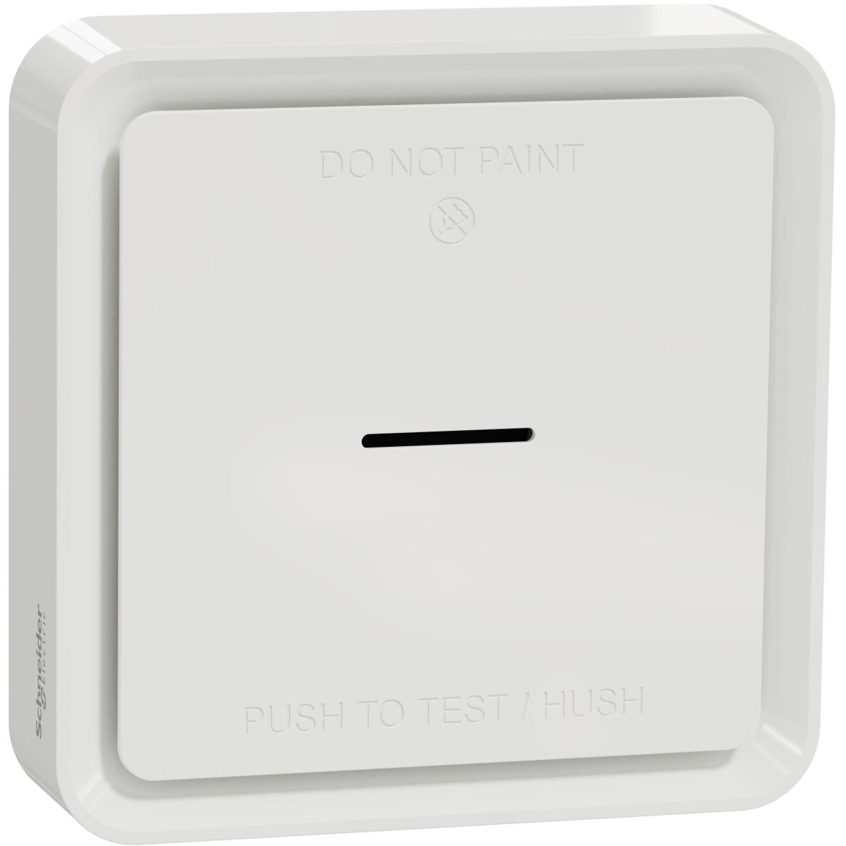 Schneider Electric Wiser Rauchmelder für Wohnanwendungen mit photoelektrischer Technologie.Wiser Rauchmelder erkennt gefährlichen Rauch und Feuer und warnt die Bewohner eines Hauses. Wenn das Gerät mit dem Wiser-System verbunden ist, sendet es die Benachrichtigungen über die Wiser-App. Es kann auch Signale durch andere Produkte (z. B. Taschenlampen) auslösen, die mit dem Wiser-System verbunden sind. Die Betriebsspannung beträgt 3VDC, gespeist von einer versiegelten Lithiumbatterie mit einer Lebensdauer von 10 Jahren. Die Abmessungen sind (B) 89,5mm x (H) 33,5mm x (T) 89,5mm. Das Produkt unterstützt 3 Funktionen, Alarm, Stummschaltung, Selbsttest der Raucherkennung. Diese Aufputzmontage ist für die Inneninstallation vorgesehen. Die Befestigung erfolgt durch Schrauben. Das Produkt ist für die Wand- oder Deckenmontage vorgesehen. Es ist kompatibel für eine Umgebungstemperatur von 0°C bis 45°C. Die Schutzart ist IP20. Die Farbe des Produkts ist weiß (RAL 9003).