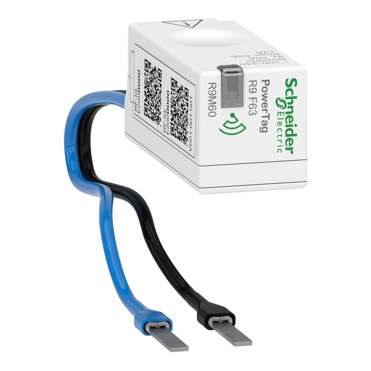 PowerTag Resi9 F63. 1 polig + N, 230V AC, Imax 63A. Verbindung zum Wiser IP Gateway über Funkverbindung - ISM Band 2.4 GHz to 2.4835 GHz. Einbau von oben oder unten an einen Leitungsschutzschalter. Energiesensoren zum Übertragen der Energiedaten an das Wiser IP-Gateway.