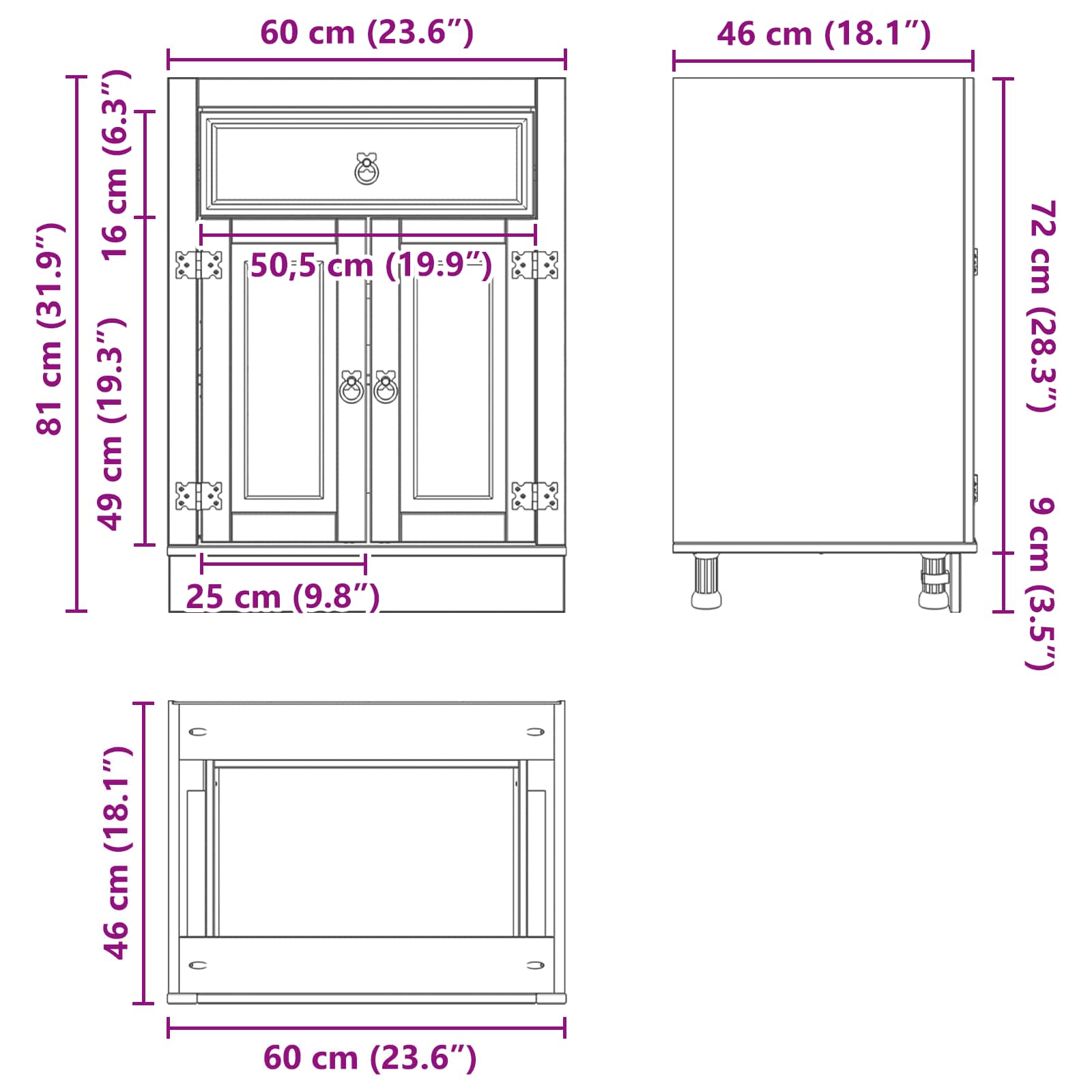 - Gesamtabmessungen: 60 x 46 x 81,5 cm (L x B x H)