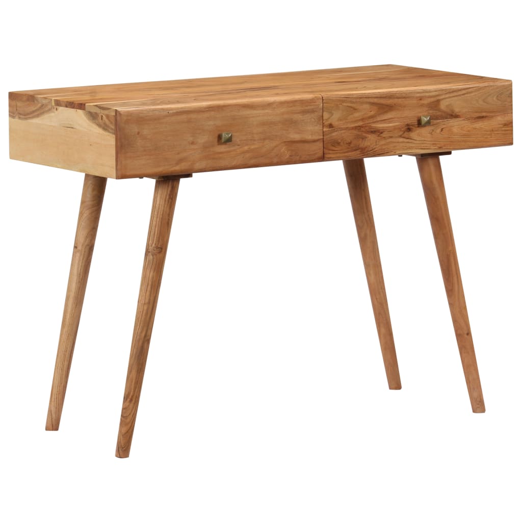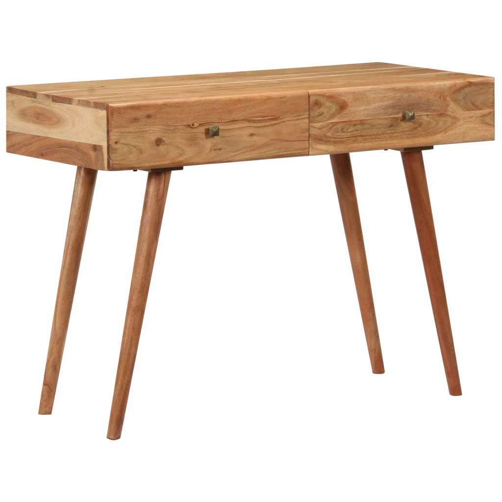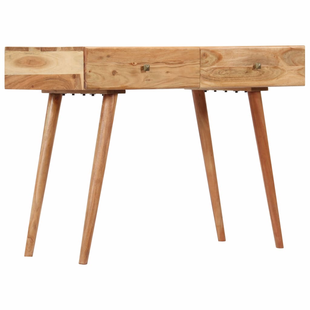 Dieser Schreibtisch strahlt einen rustikalen Charme aus und wird zum Blickfang Ihres Interieurs. Dieser Schreibtisch besteht aus massivem Akazienholz, das durch sein honigfarbenes Finish dem Tisch einen schönen Look und eine warme Farbe verleiht. Die Handwerkskunst und die schöne Holzmaserung machen jedes Möbelstück zu einem Unikat. Dieser Schreibtisch verfügt über 2 Schubladen, die reichlich Platz bieten, um Notizblöcke, Bücher und andere verschiedene Gegenstände gut organisiert zu halten. Außerdem kann dieser Computertisch auch als Konsolentisch, Flurtisch oder Beistelltisch verwendet werden. Wichtiger Hinweis: Die Maserung variiert von Stück zu Stück, sodass jedes Möbelstück einzigartig ist. Die Lieferung erfolgt nach dem Zufallsprinzip.