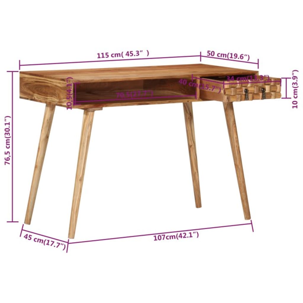 Dieser Schreibtisch aus Holz versprüht einen rustikalen Charme und wird ein echter Hingucker in deinem Interieur sein. Aus massivem Akazienholz mit natürlichem Finish gefertigt, weist dieser Schreibtisch eine ansprechende Optik auf. Der robuste Bürotisch verfügt über 1 Schublade und 1 Fach, die reichlich Platz bieten, um Notizblöcke, Bücher und andere verschiedene Gegenstände ordentlich aufzubewahren. Zudem kann dieser Computertisch auch als Konsolentisch, Flurtisch oder Beistelltisch verwendet werden. Wichtiger Hinweis: Die Maserung variiert von Stück zu Stück und macht jedes Möbelstück zu einem Unikat. Die Lieferung erfolgt nach dem Zufallsprinzip und gewährleistet so die Exklusivität und Individualität deines Produkts. Achtung: Um ein Umkippen zu vermeiden, sollte dieses Produkt mit der mitgelieferten Wandhalterung gesichert werden.
