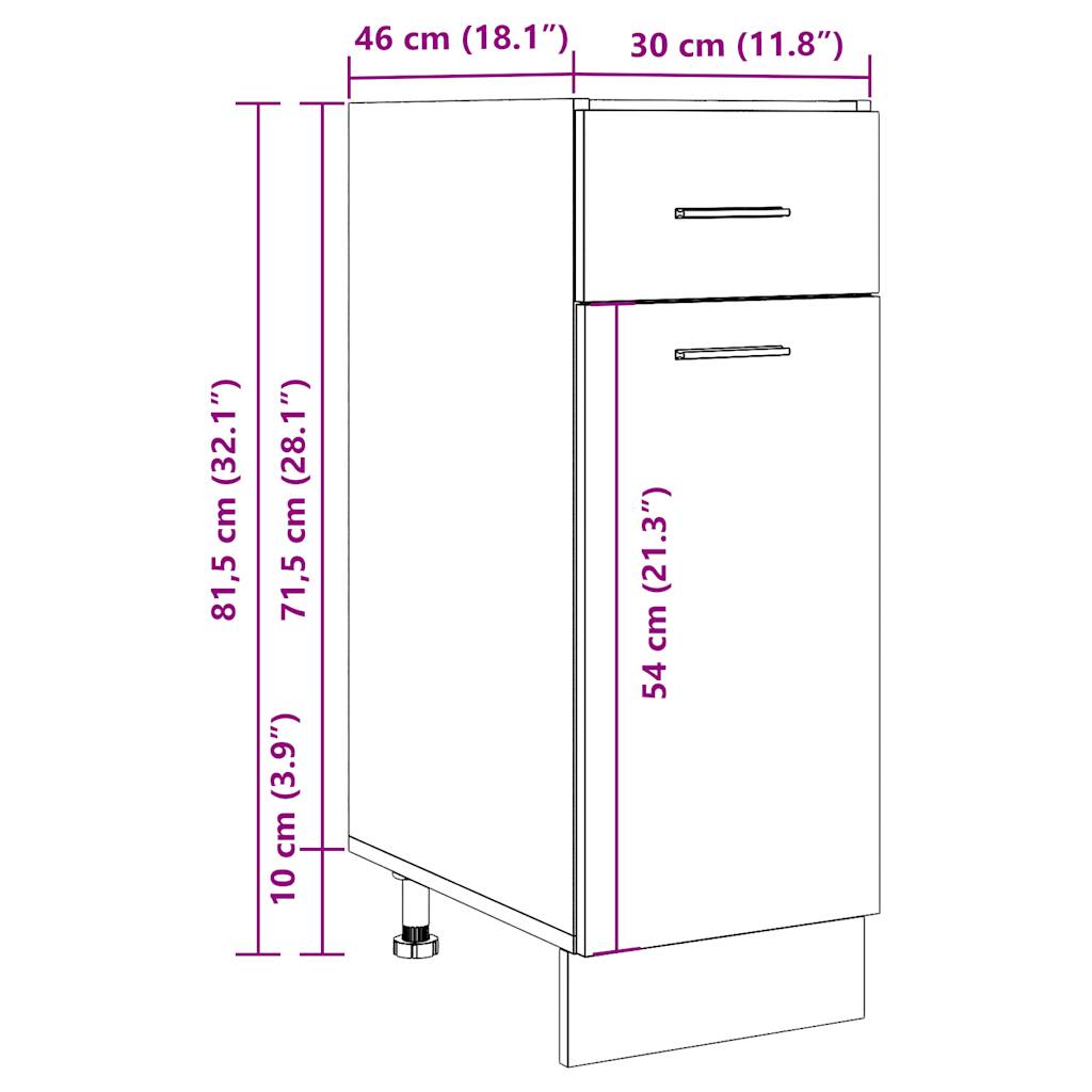 Dieser Unterschrank mit Schublade optimiert Ihren Küchenraum und bietet reichlich Stauraum für Ihre persönlichen Sachen! Langlebiges Material: Holzwerkstoff ist ein Material hoher Qualität mit glatter Oberfläche, das sich durch Festigkeit, Stabilität und Feuchtigkeitsbeständigkeit auszeichnet. Aus Holzwerkstoff gefertigt, lässt sich dieser Küchenschrank einfach reinigen.Viel Stauraum: Der Schrank verfügt über eine Schublade und zwei Fächer und bietet dadurch reichlich Stauraum für Schüssel, Teller, Töpfe und Küchengeräte.Praktische Tür: Sorge für Ordnung, indem du wichtige Kleinigkeiten in diesem Küchenschrank hinter der Tür versteckst. Achtung:Um ein Umkippen zu vermeiden, sollte dieses Produkt mit der mitgelieferten Wandhalterung gesichert werden.