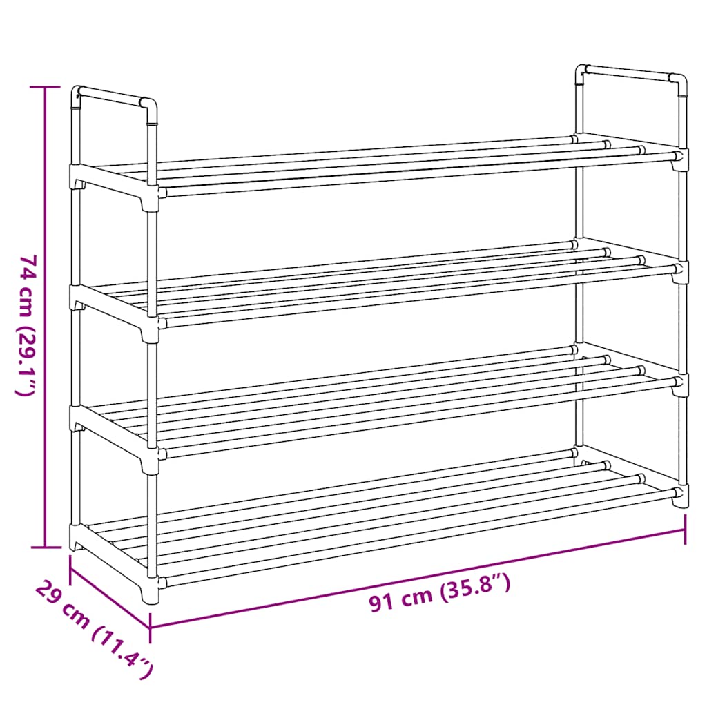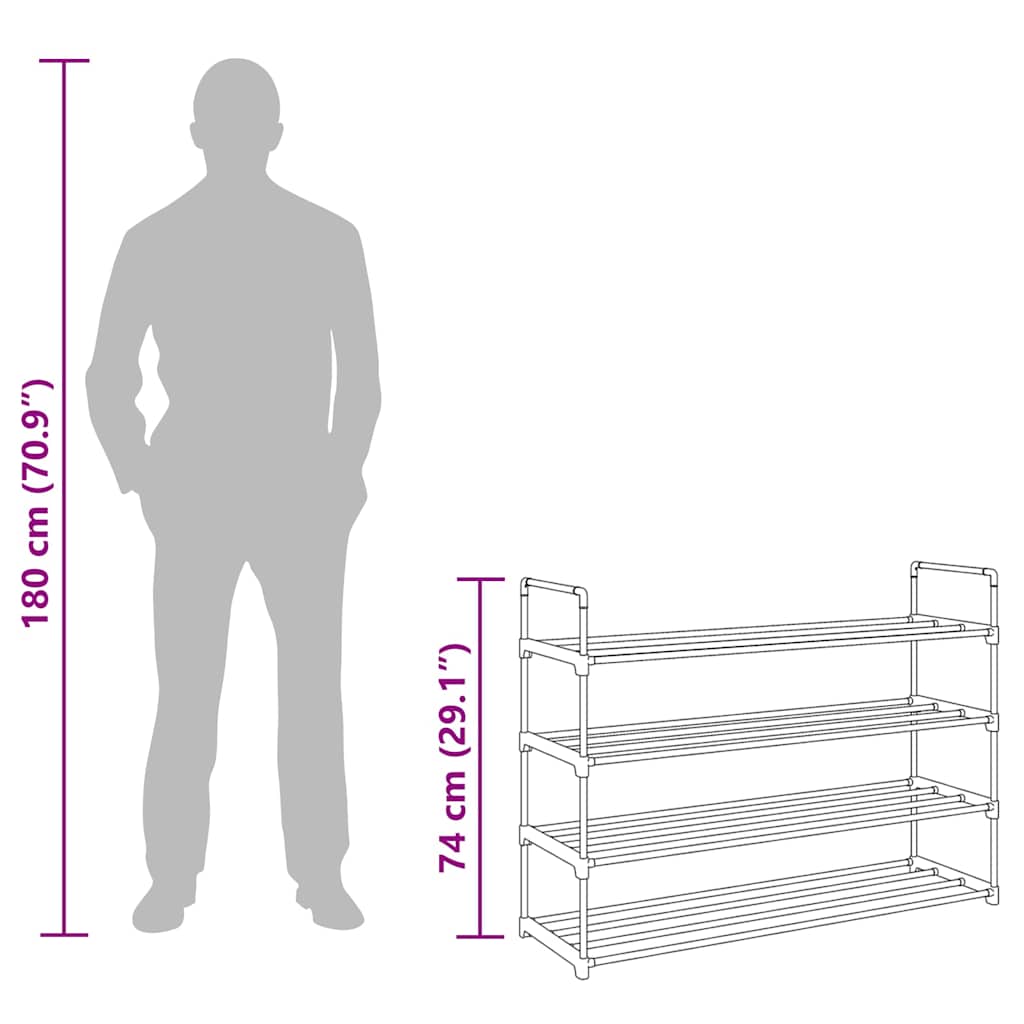 Dieses minimalistische Schuhregal ist eine ideale Aufbewahrungslösung für Ihre Schuhe. Es hat einen röhrenförmigen Metallrahmen, der leicht und dennoch robust ist, so dass das Schuhregal leicht zu bewegen und langlebig ist. Es hat vier großzügige Regale, die genug Platz bieten, um Ihre Schuhe organisiert anzuordnen. Der Zusammenbau ist kinderleicht.