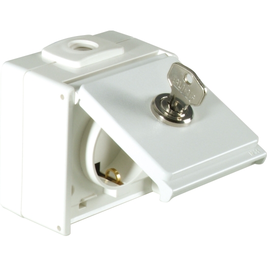OPUS-AQUA Schutzkontaktsteckdose, 1-fach IP54, reinweiß, mit Schloss