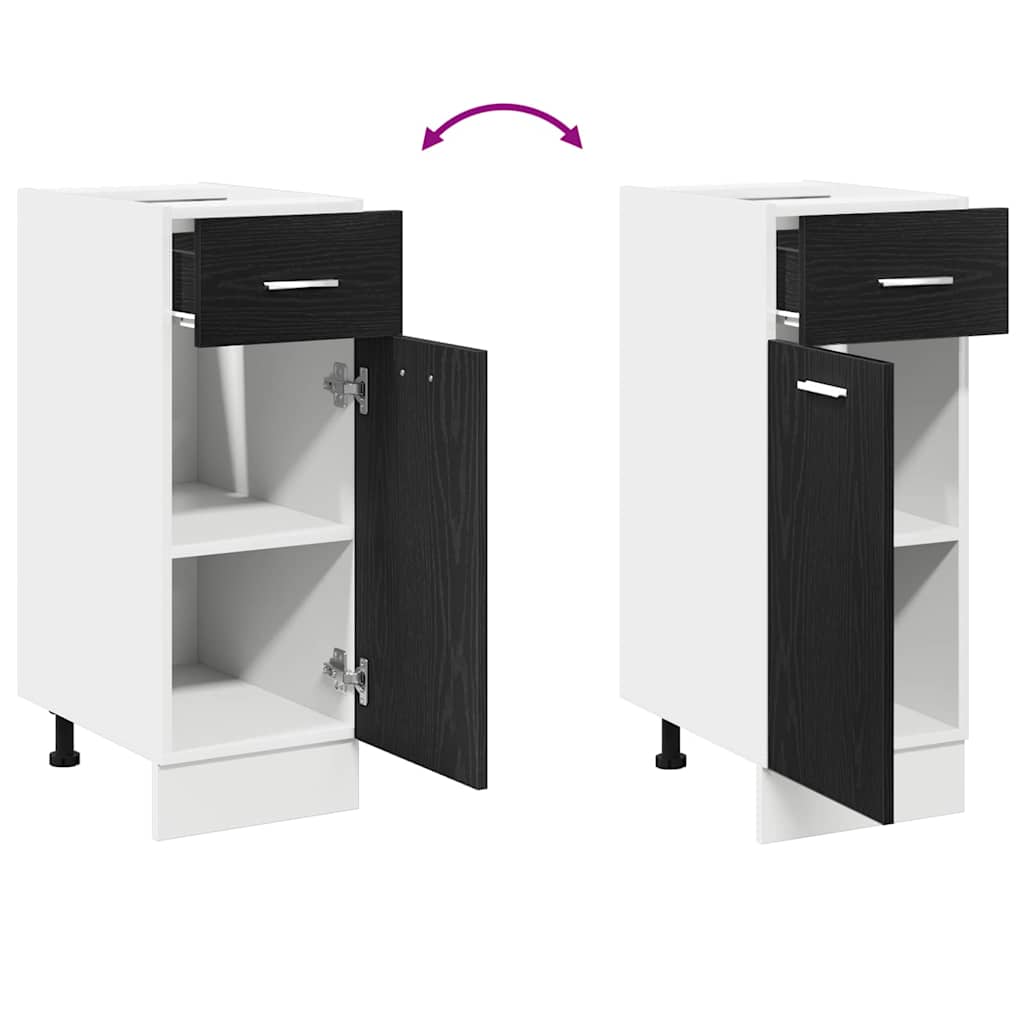 Der moderne Kchenunterschrank in Schwarz Eiche ist die perfekte Aufbewahrungslsung fr jedes Zuhause. Ideal fr alle, die ihre Kche organisiert und stylisch haben wollen. Mit 30 cm Tiefe, 46 cm Breite und 81,5 cm Hhe bietet er ausreichend Platz fr deine Kchenutensilien. Aus Holzwerkstoff gefertigt, ist er langlebig und sieht zudem toll aus. Egal, ob du Kochgeschirr oder Geschirr verstauen mchtest, dieser Schrank ist vielseitig einsetzbar und ein Muss in deiner Kche.