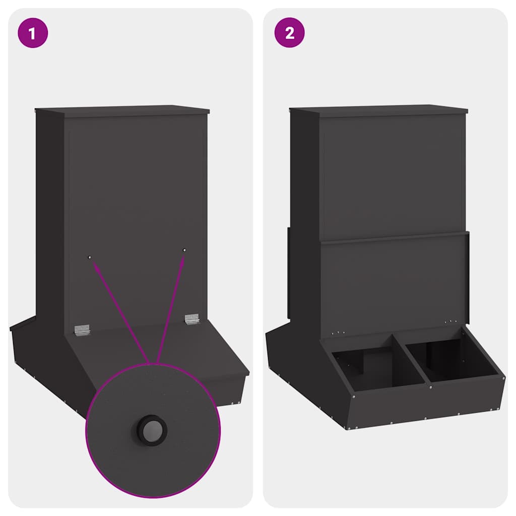 Dieser Metall-Schweinefutterautomat bietet eine moderne Lösung für die Schweinefütterung, die stilvoll und funktional ist. Ideal für drinnen und draußen, passt er perfekt in jeden Garten, auf jede Terrasse oder auch in eine gemütliche Ecke im Wohnzimmer. Mit seinen klaren Linien und dem minimalistischen Stil ist er überall da, wo Einfachheit und Effizienz zählen. Der Automat ist die perfekte Lösung für Schweinebesitzer, die Wert auf Design, Haltbarkeit und Wetterfestigkeit legen. Robuster Stahlkörper Die Stahlkonstruktion ist langlebig und hält harten Bedingungen stand, was sicherstellt, dass deine Schweine eine zuverlässige Futterquelle haben. Wetterbeständigkeit Der Futterautomat kann drinnen und draußen genutzt werden und bleibt durch wechselndes Wetter funktional und ansprechend. So ist er länger nutzbar und bleibt in Topform. Einfacher Zugang zu Türen Die Türen sind mit Magneten ausgestattet, die den Zugang erleichtern und gleichzeitig das Futter sicher halten. Das verbessert die Benutzerfreundlichkeit und macht die Wartung simpel. Große Speicherkapazität Mit einer Kapazität von 20 kg gibt es viel Platz für Futter, was häufiges Nachfüllen minimiert und dir den Alltag erleichtert. Einfache Pflegehinweise Die Reinigung geht schnell und einfach ? einfach abwischen, um Staub zu entfernen. So sieht dein Futterautomat immer frisch aus.