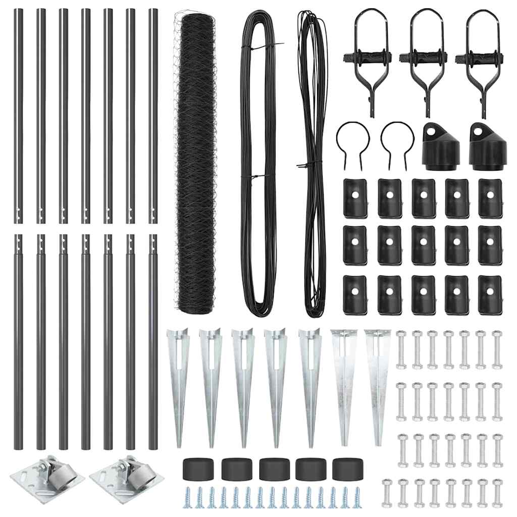 Der vidaXL Sechseck Zaun ist die ideale Lösung, um Gärten und Außenbereiche zu sichern. Seine moderne graue Farbe und das robuste Stahl-Design passen gut in jeden Garten und sorgen gleichzeitig für Langlebigkeit und Sicherheit. Er ist eine Top-Wahl für verschiedenste Freizeitaktivitäten im Freien. Langlebiges Material: Hergestellt aus pulverbeschichtetem Stahl, ist dieser Zaun dafür gemacht, den Elementen zu trotzen und somit lange zu halten und deine Außenbereiche zu schützen. Die glatte, wetterfeste Oberfläche erhöht seine Lebensdauer. Ideal für Gärten: Das schicke Grau fügt sich genial in die Natur ein und bietet starken Schutz für Haustiere und Kinder, wodurch dein Garten noch besser aussieht. Einfache Montage: Besonders für deinen Komfort gemacht, kann dieses Set von nur zwei Personen mit minimalem Werkzeug wie einem Gummihammer und einem Maßband zusammengebaut werden, damit du deinen Außenbereich schnell genießen kannst. Anpassbares Design: Die coole erweiterbare Funktion erlaubt es dir, weitere Abschnitte hinzuzufügen, was perfekt für verschiedene Garten Größen und Anforderungen ist. Komplettes Kit: Dieses Zaunset enthält alles, was du brauchst, wie Zaunpfosten mit Spikes, Maschenrollen und Befestigungszubehör, um eine reibungslose Installation zu gewährleisten.
