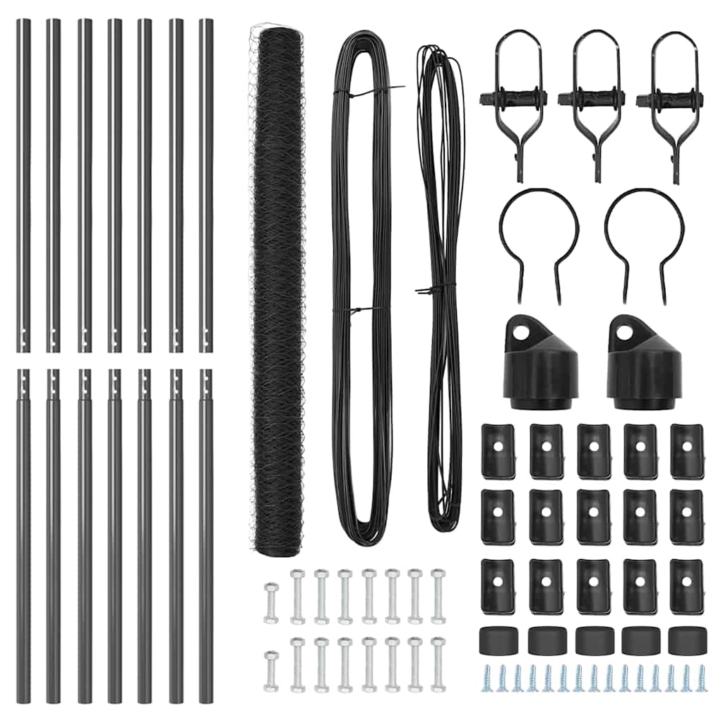 Dieser vidaXL Sechseckzaun ist dafür gedacht, dir eine sichere und stylische Möglichkeit zu bieten, Gärten und Außenbereiche einzuzäunen. Die moderne graue Farbe und der robuste Aufbau machen ihn zu einer tollen Wahl für jeden Garten, damit Sicherheit gewährleistet ist und es gleichzeitig gut aussieht. Robustes Material: Aus pulverbeschichtetem Stahl gemacht, ist dieser Zaun für die Elemente gebaut und bietet langanhaltenden Schutz für deine Außenbereiche. Die lackierte Oberfläche sorgt für Haltbarkeit und Rostbeständigkeit. Top für draußen: Die schicke graue Farbe fügt sich super in die Natur ein und bietet eine solide Barriere für Haustiere und Kinder, während dein Garten toll aussieht. Einfache Montage: Für Komfort entworfen, kann dieses Set schnell von nur zwei Personen und mit einfachen Werkzeugen zusammengebaut werden, sodass du deinen Außenbereich sofort genießen kannst. Mehrere Größen verfügbar: Mit 10 x 1,6 Metern ist dieser Zaun leicht anpassbar, um verschiedene Setups zu ermöglichen, was ihn zu einer flexiblen Ergänzung für jedes Zuhause macht. Komplettes Set: Das Set kommt mit allem, was du brauchst - Zaunmesh, Pfosten, Halterungen und Draht - was die Installation kinderleicht macht.