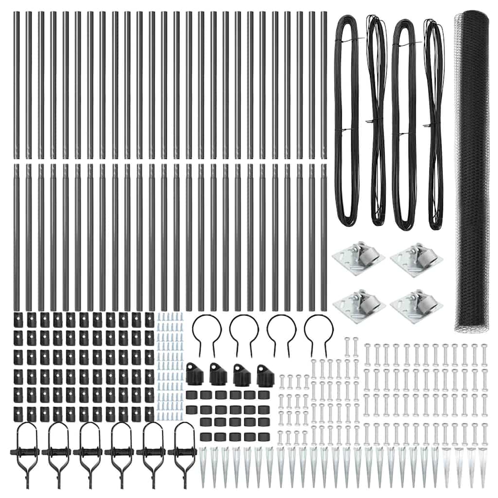 Der vidaXL Sechseckzaun bietet eine zuverlässige und flexible Zaunlösung für dein Außengelände und kommt in einem schicken grauen Finish mit robustem Aufbau. Er sorgt für Sicherheit und sieht dabei gut in deinem Garten aus. Robustes Material: Für die Ewigkeit gebaut, besteht dieser Zaun aus pulverbeschichtetem Stahl, der allen Wetterbedingungen standhält, während die UV-beständige Beschichtung dafür sorgt, dass er nicht schnell verblasst. Perfekt für draußen: Die schicke graue Farbe passt super in deinen Garten und bietet eine starke Barriere für Haustiere oder Kinder, was ihn zu einer praktischen und stylischen Wahl macht. Einfache Montage: Für Bequemlichkeit gestaltet, kann das Set mit nur zwei Personen und ein paar gängigen Werkzeugen schnell zusammengebaut werden, sodass du deinen Außenbereich sofort genießen kannst. Vielseitige Merkmale: Mit einer Abdeckung von 50 Quadratmetern ist dieser Zaun für verschiedene Aufbauten konzipiert und ermöglicht dir Anpassungen für unterschiedliche Anwendungen und Räume. Komplettes Set: Das gesamte Set beinhaltet alles ? Zaunpfosten, Maschen, Bindemittel und Anker, sodass du alles für eine einfache Montage dabei hast.