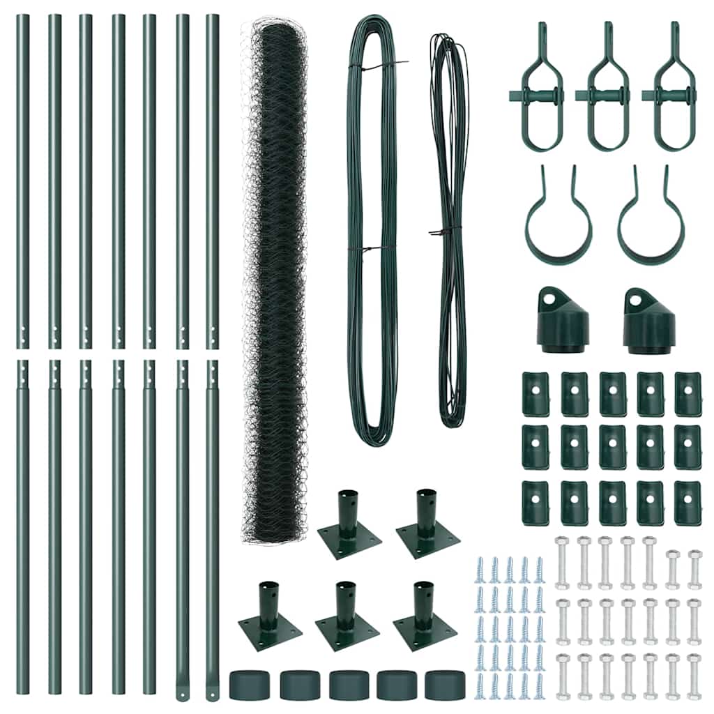 Der vidaXL Sechseckzaun bietet eine stabile Lösung für außen. Mit der grünen Farbe und der stabilen Stahlkonstruktion sieht er nicht nur toll aus, sondern ist auch langlebig und sorgt für Sicherheit. Ideal für viele Anwendungen im Freien. Robuste Bauweise: Aus pulverbeschichtetem Stahl, ist dieses Set hart und langlebig für draußen, perfekt für deinen Garten. Perfekt für draußen: Der grüne Farbton passt super ins Freie und bildet eine sichere Barriere für Haustiere und Kinder. Einfache Montage: Man braucht nur 2 Personen und einfache Werkzeuge wie einen Anker, eine Bohrmaschine, ein Maßband und einen Hammer; das hilft, den Zaun schnell aufzubauen. Vielseitige Größen: Größe von 10 x 1,5 m, ideal für viele verschiedene Gartenkonfigurationen. Komplettes Set: Inklusive 6 Zaunpfosten, Drahtgewebe, Stützdrähte und Befestigungsclips für eine unkomplizierte Installation.