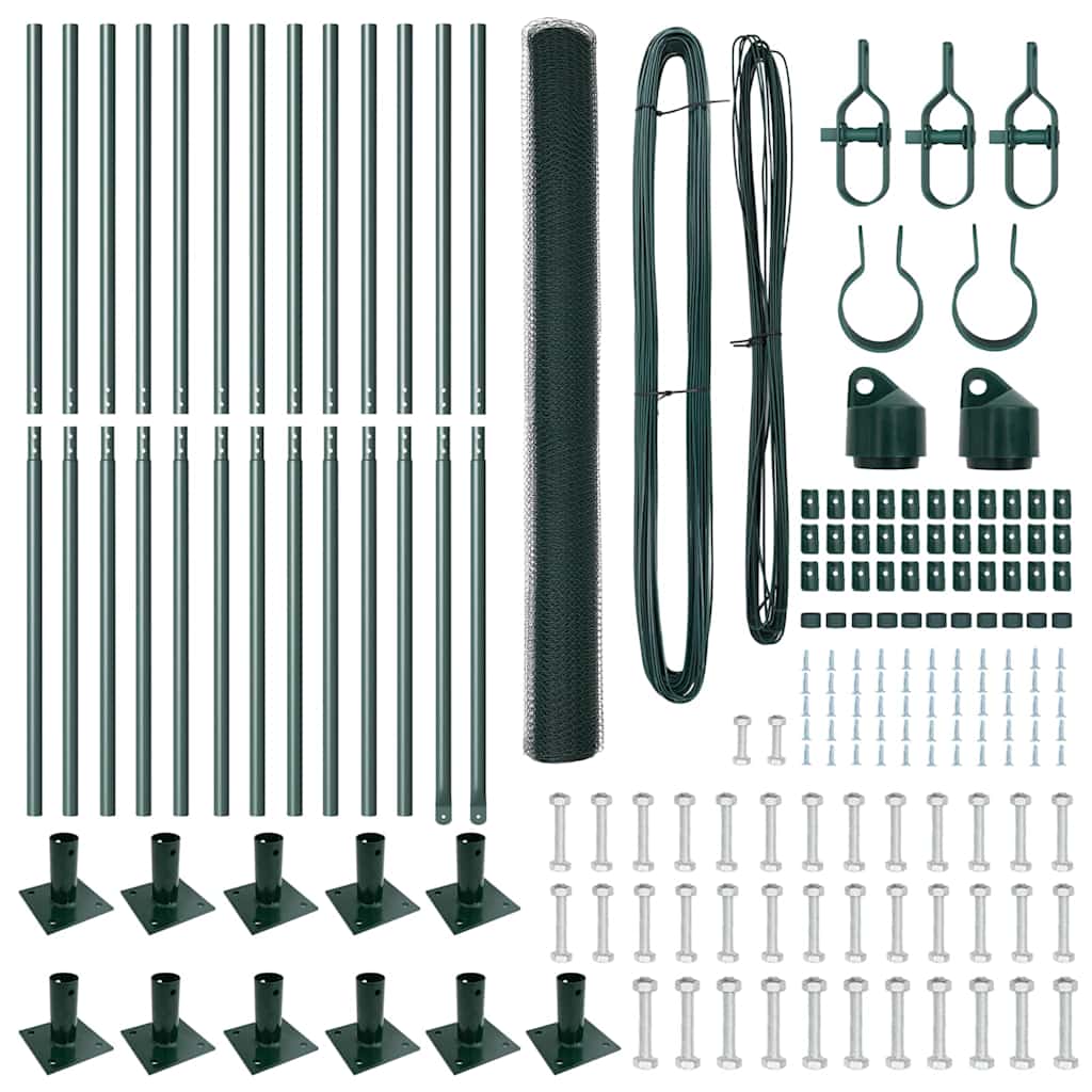 Der vidaXL Sechseckzaun ist eine verlässliche Wahl, um Gärten und Außenbereiche einzuzäunen. Mit seiner strahlend grünen Farbe und stabilen Bauweise macht er in jedem Garten eine gute Figur und bietet Langlebigkeit und Sicherheit. Er ist für viele verschiedene Anwendungen im Freien perfekt geeignet. Langlebiges Material: Aus starkem, UV-resistentem Metall und Kunststoff, der eine lange Nutzung und Schutz für deine Außenbereiche gewährleistet. Perfekt für Gärten: Der kräftige grüne Farbton fügt sich optimal in die Natur ein und dient als stabile Barriere für Haustiere und Kinder, sieht dabei auch noch klasse aus. Einfache Montage: Für deinen Komfort designed, können zwei Personen mit nur ein paar Grundwerkzeugen wie einem Bohrer und Hammer es schnell zusammenbauen, sodass du deinen Außenbereich genießen kannst. Vielseitige Nutzung: Perfekt für verschiedene Anwendungen, bestens geeignet als Gartenbarriere oder Sicherheitszaun ? eine smarte Wahl für jedes Außenprojekt. Umfassendes Set: Dieses Zaunset kommt mit allem, was du brauchst, einschließlich Zaunpfosten, einer Netzrolle und Befestigungen, sodass du alles hast, was du für eine sorgenfreie Installation benötigst.