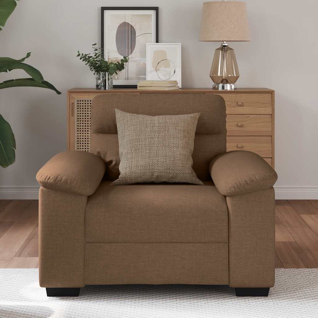 Dieser Sessel bietet einen ausgezeichneten Platz zum Plaudern, Lesen, Fernsehen oder einfach nur zum Entspannen. Er wird ein echter Blickfang in deinem Zuhause sein. Weiches und strapazierfähiges Material: Polyestergewebe fühlt sich weich an, ist atmungsaktiv sowie strapazierfähig und sorgt so für höchsten Komfort und Behaglichkeit.Robustes und stabiles Gestell: Der Holz- und Metallgestell des Loungesofas sorgt für Robustheit und Stabilität.Breite Armlehnen: Die breiten Armlehnen bieten stabilen Halt und großzügigen Platz für alles, vom Handy bis zur Schüssel mit Filmsnacks, und sie sind auch bequem genug, um den Kopf darauf abzulegen, wenn du dich für ein Nickerchen hinlegst.Komfortables Sitzgefühl: Das Polstersofa kommt mit der dick gepolsterten Sitz- und Rückenlehne sowie Armlehnen für hohen Komfort.Vielseitig einsetzbar: Dieses Sofa eignet sich perfekt für Wohnzimmer, Büros und Gästezimmer. Es passt sich mühelos an verschiedene Umgebungen an und ist somit eine praktische Ergänzung für jedes Zuhause oder Büro.