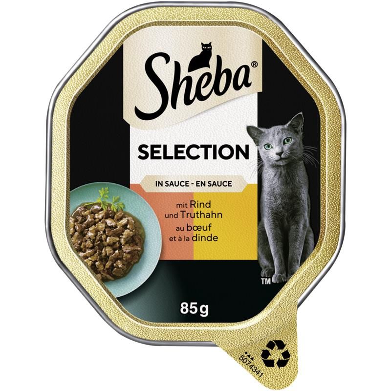 Eine Variation von sorgfältig ausgewählten, zarten Stückchen in köstlicher SauceVerlockende Rezepturen, die deine Katze lieben wird. Erhältlich in praktischen, recyclingfähigen Sheba Katzenfutterschalen mit je 85g.Katzennassfutter in Sauce, hergestellt mit natürlichen und hochwertigen Zutaten, die von unseren zuverlässigen Lieferanten erwirtschaftet wurden.Das hochwertige Sheba Katzennassfutter für ausgewachsene Katzen bietet deiner Samtpfote täglich eine komplette und ausgewogene Ernährung.Ohne künstliche Farb- oder Konservierungsstoffe.Erhältlich in praktischen, leicht zu öffnenden und portionierbaren Schalen.Entwickelt mit unseren Tierärzten und Ernährungsspezialisten aus dem Waltham Petcare Science Institute.Sheba ist zur Freude aller Katzen seit über 30 Jahren Experte für Nassfutterrezepturen. Kulinarische Hochgenüsse für jeden Tag in einer Reihe von Geschmacksrichtungen und Texturen, die Ihre Katze kennt und liebt, hergestellt aus natürlichen und hochwertigen Zutaten.Die vielfältige Auswahl an hochwertigem Katzenfutter befriedigt selbst anspruchsvolle Katzen in ihrem Wunsch, täglich eine ganz besondere Mahlzeit zu genießen.Zusammensetzung: Fleisch und tierische Nebenerzeugnisse* (u.a. Rind 4% und Truthahn 4% im Häppchen**), pflanzliche Nebenerzeugnisse, Getreide, Gemüse, Mineralstoffe, pflanzliche Eiweissextrakte, Zucker. *93% natürlich. **Häppchen machen 48% des Produkts aus,Analytische Bestandteile (%): Protein: 8.7; Fettgehalt: 5.0; anorganischer Stoff: 2.0; Rohfaser: 0.31; Feuchtigkeit: 82.0. Brennwert: 72 kcal/85 g.Zusatzstoffe pro kg: Aromen.Ernährungsphysiologische Zusatzstoffe: Vitamin D3: 200 IE, Taurin: 620 mg, Kupfer (Kupfer(II)-sulfat-Pentahydrat): 1.3 mg, Jod (Calciumjodat wasserfrei): 0.34 mg, Eisen (Eisen-(II)-sulfat-Monohydrat): 16.8 mg, Mangan (Mangan(II)-sulfat, Monohydrat): 3.4 mg, Zink (Zinksulfat Monohydrat): 16.2 mg.Fütterungsempfehlung:Eine 3 kg Katze benötigt 2 - 3 Schalen täglich, eine 4 kg Katze benötigt 3 - 3 Schalen täglich, eine 5 kg Katze benötigt 3 - 4 Schalen täglich. 1 Schale lässt sich durch 17 - 20 g Trockennahrung ersetzen. Passen Sie die Fütterungsmenge den Bedürfnissen Ihrer Katze an. Stellen Sie frisches Trinkwasser bereit. Bitte bei Zimmertemperatur servieren.Inverkehrbringer: MARS GmbH, Eitzer Straße 215, 27283 Verden (Aller), Tel.: 04231/940, E-Mail: kontakt@dep.mars.com