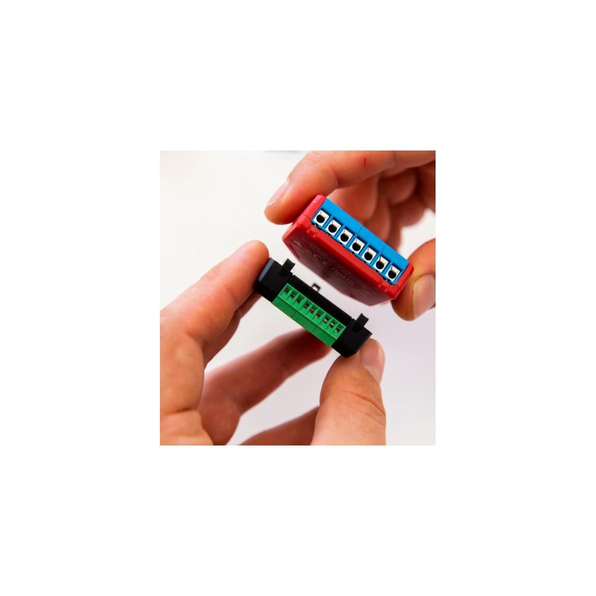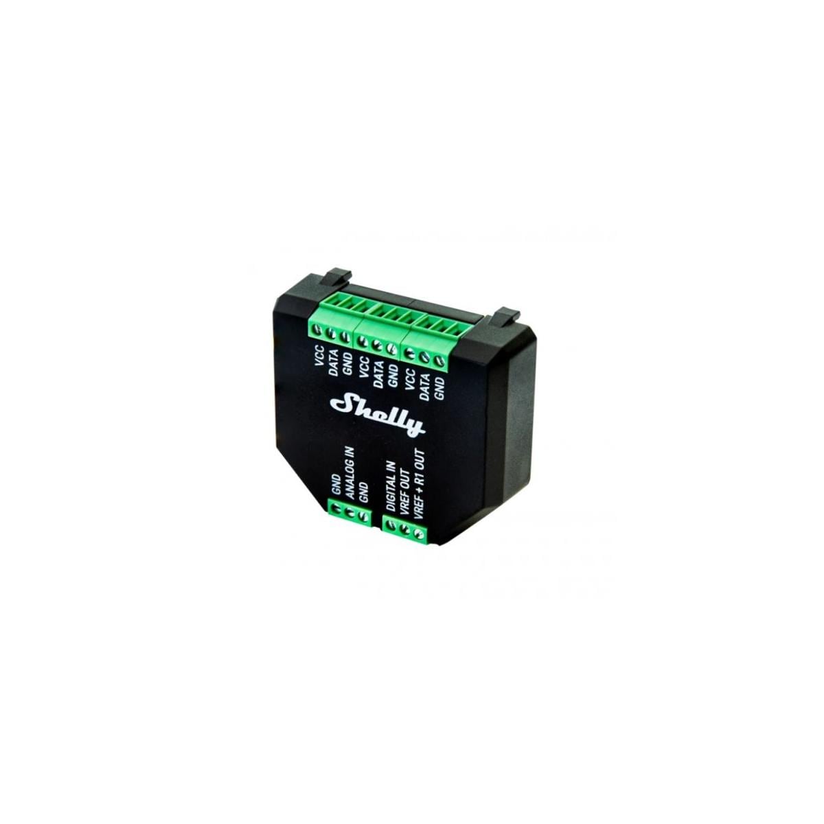 Shelly Plus Add-on ist eine galvanisch getrennte Sensorschnittstelle für alle Shelly Plus Relais. Verwenden Sie das Add-on zur Messung von Temperatur und Luftfeuchtigkeit über seine 1-Wire-Anschlüsse oder verbinden Sie verschiedene analoge und digitale Sensoren für komplexe Automatisierungen und höhere Effizienz.