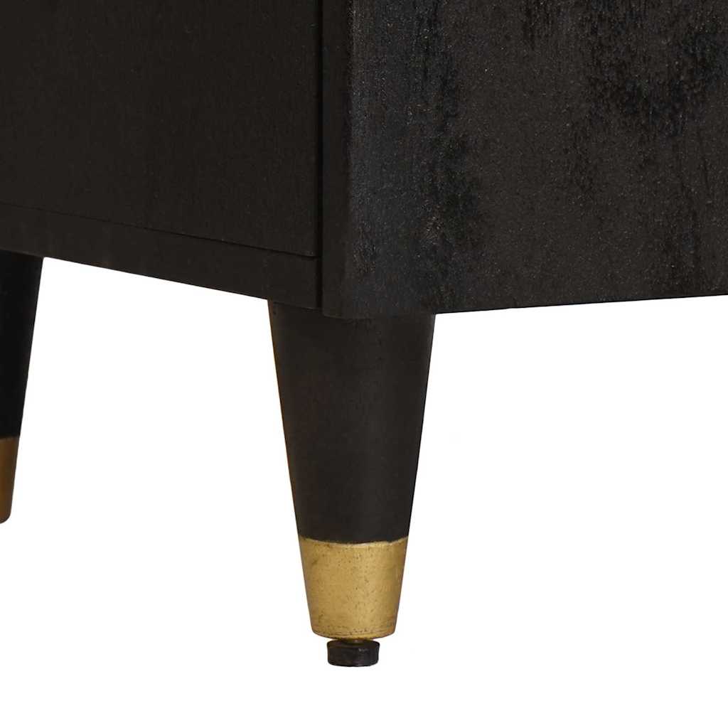 Der elegante Sideboard bringt Stil und praktische Lösungen in dein Wohnzimmer oder Esszimmer. Mit einem modernen Design und klaren Linien sowie goldenen Akzenten fällt er sofort auf, während die stabile Konstruktion aus massivem Mangoholz für Langlebigkeit sorgt. Die schlichte und funktionale Gestaltung ist die perfekte Wahl für alle, die ein schickes Möbelstück wollen, das viel Stauraum bietet. Robuste Materialien: Der Sideboard ist aus hochwertigem massivem Mangoholz gefertigt und bringt Langlebigkeit sowie ein natürliches Flair in dein Zuhause. Robust genug für schwere Dinge und mit einer schönen Maserung, die rustikale Eleganz ausstrahlt. Dekorative goldene Akzente: Mit kunstvollen goldenen Designelementen auf der Außenseite sorgt er für einen luxuriösen Touch in deinem Zuhause. Diese Akzente passen perfekt zur glänzenden Messinghardware, die den modernen Look unterstreicht. Funktionale Messingkomponenten: Ausgestattet mit stylishen Messingknöpfen und stabilen Messingbeinen, vereint der Sideboard Ästhetik und Funktion. Die Messingteile sind für den Alltag gemacht und tragen zur Haltbarkeit bei. Effizientes Tür-Design: Mit einem praktischen Türmechanismus kannst du leicht auf deine Sachen zugreifen und alles gut organisieren. Die Tür öffnet sich sanft und schließt sicher, während der schlanke Look des Sideboards gewahrt bleibt. Einfache Pflege: Um den Glanz zu bewahren, einfach mit einem trockenen Tuch abwischen. So bleibt der Sideboard über die Jahre in Top-Zustand, ohne dass du viel Aufwand hast.