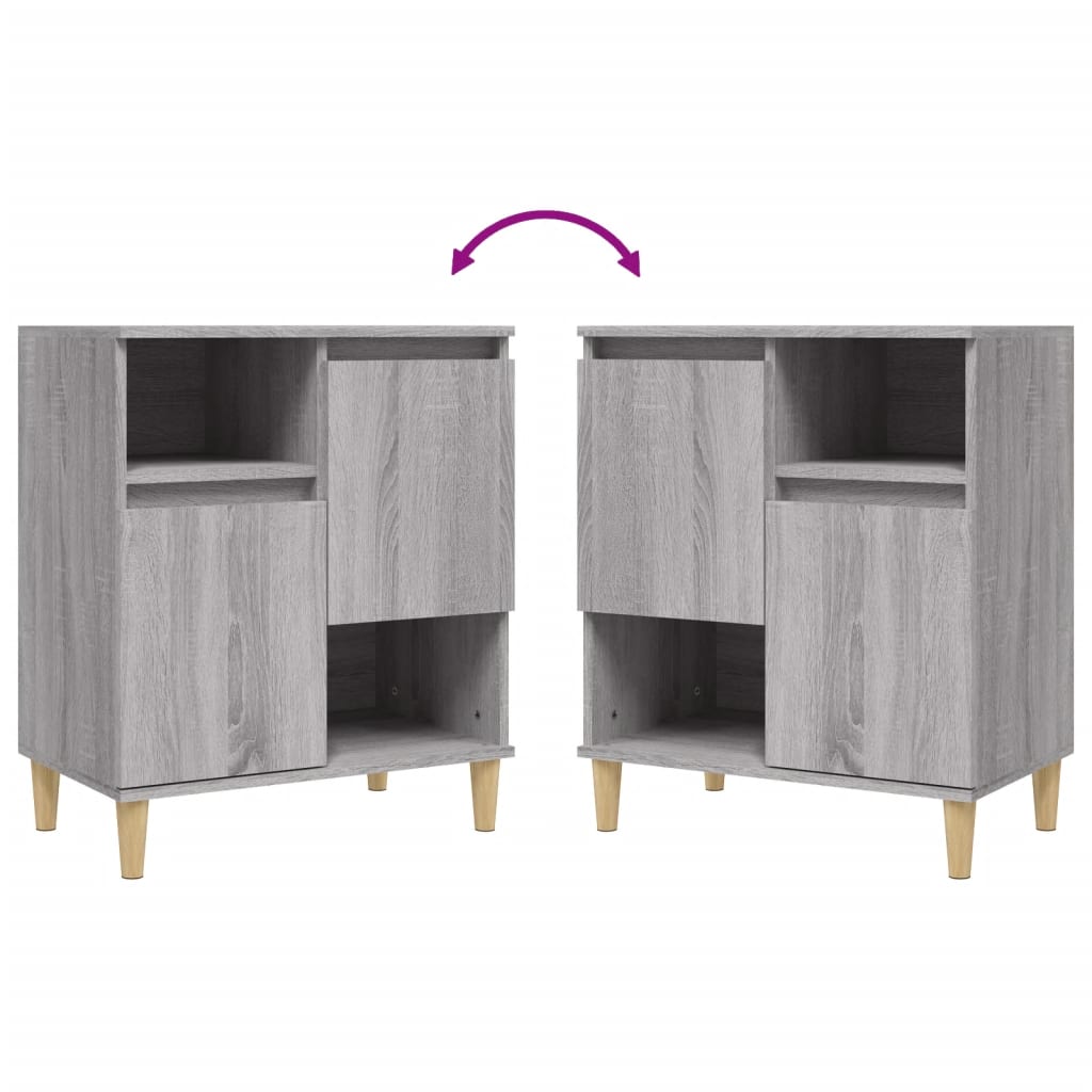 Mit ihrem eleganten und klassischen Design werten diese trendigen Sideboards deine Einrichtung sofort auf. Langlebiges Material: Holzwerkstoff ist ein Material von außergewöhnlicher Qualität mit glatter Oberfläche, das sich durch Festigkeit, Stabilität und Feuchtigkeitsbeständigkeit auszeichnet. Aus Holzwerkstoff gefertigt, lässt sich der Schrank mit einem feuchten Tuch leicht reinigen.Reichlich Stauraum: Dieses Sideboard verfügt über 4 Fächer und 2 Türen und bietet dadurch reichlich Stauraum, um deine Zeitschriften, Bücher, DVDs, Multimediageräte und andere wichtige Sachen übersichtlich und griffbereit aufzubewahren.Holzbeine: Die Beine aus massivem Eukalyptusholz verleihen der Kommode eine natürliche und angenehme Optik und sorgen gleichzeitig für Stabilität.Präsentation: Die Oberplatte eignet sich perfekt, um Topfpflanzen, Fotorahmen und andere Dekoartikel zur Schau zu stellen. Gut zu wissen:Die Türen können auf zwei Arten eingebaut werden. Achtung:Um ein Umkippen zu vermeiden, sollte dieses Produkt mit der mitgelieferten Wandhalterung gesichert werden.