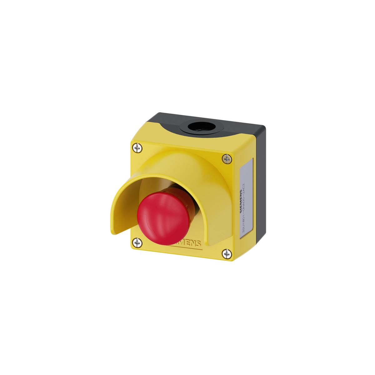 Gehäuse für Befehlsgeräte, 22 mm, rund, Gehäusematerial Kunststoff, Gehäuseoberteil gelb, 1 Befehlsstelle Kunststoff, mit Schutzkragen, A=NOT-HALT-Pilzdrucktaster rot, 40 mm, drehentriegelt, 1Ö, Schraubanschluss, Bodenbefestigung, oben und unten je 1xM20 Gehäuse SIRIUS ACT für die Montage der 22,5 mm Befehls- und Meldegeräte bei räumlich getrennter Anordnung von Steuereinheiten und Schaltschränken.Unter dem Markennamen SIRIUS ACT bietet Siemens ein einzigartiges Portfolio an Befehls- und Meldegeräten mit weltweiten Produkt-Zulassungen in vier modernen Designreihen aus robustem Echtmetall und hochwertigem Kunststoff.Das innovative Aufschnappkonzept vereinfacht die Montage so weit, dass dafür nur eine Hand und kein Spezialwerkzeug erforderlich ist. Als Montagebohrungen genügen nutfreie Löcher, da bereits ein 100%iger Verdrehschutz integriert ist.Dank der durchgängig hohen Schutzart sind die robusten Geräte industrietauglich und für den Außeneinsatz geeignet. Sogar die Reinigung mit Hochdruckstrahl ist möglich. Weder Staub, Öle noch aggressive Laugen können den zuverlässigen Betrieb stören.Neben der Standardverdrahtung können die meisten Geräte auch über PROFINET, AS-Interface oder IO-Link an die Steuerung angebunden werden. Damit reduzieren Sie Ihren Verdrahtungsaufwand, minimieren Fehlerquellen und gewinnen mehr Flexibilität.Komfortabel unterstützt der grafische Online-Konfigurator bei Auswahl und Bestellung von Einzelgeräten, Gehäusen und Beschriftungen. Umfangreiche Dokumentation (z.B. Handbuch, 3D-Daten, Anschlussdiagramm) ist verfügbar.Lieferbare Ausführungen: gelb/grau, Kunststoff/Metall, 1-6 Befehlstellen, Leergehäuse/Vorbestückung, wahlweise mit AS-Interface-Anbindung.SIRIUS ACT - Performance in Action beim Befehlen und Melden. Einfach montiert, einfach stark, einfach perfekt.