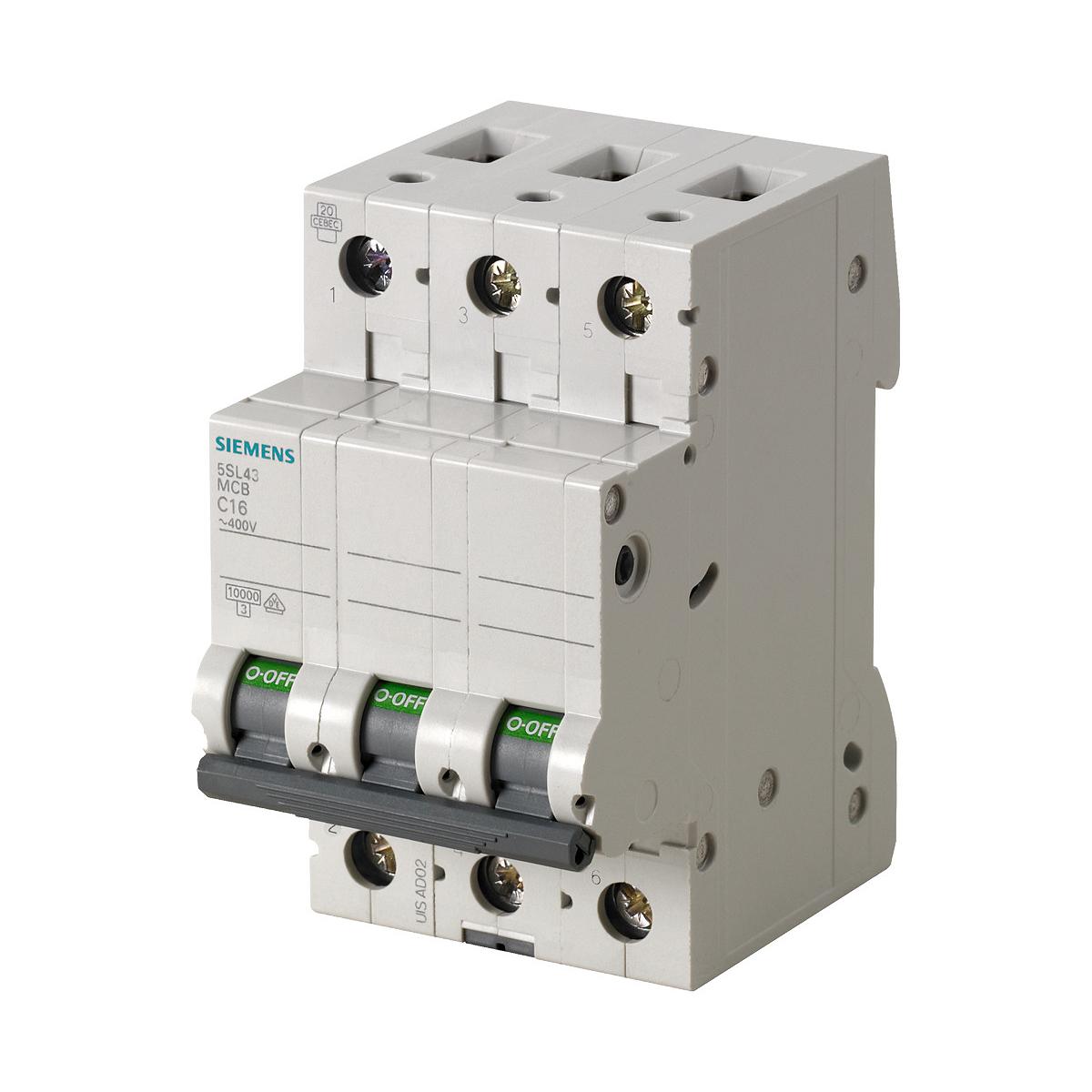 Leitungsschutzschalter 400V 10kA, 3-polig, C, 32A Leitungsschutzschalter SENTRON 5SL für den sicheren Kurzschluss- und Überlastschutz für Standardanwendungen im Wohn- und Zweckbau.Werkzeuglose Montage und Demontage des Geräts. Einfache Verdrahtung der Einspeisung durch die hinten liegende Sammelschiene.Die Leitungsschutzschalter 5SL sind erhältlich in 1-, 2-, 3-, 4- sowie in 1+N- und 3+N-poliger Ausführung sowie in weiteren Sondertypen.Das umfangreiche Zubehör, wie z.B. Hilfsschalter, ermöglicht die vielfältige Erweiterung der Funktionen.Einfach sicher mit den Schutzgeräten von SENTRON.
