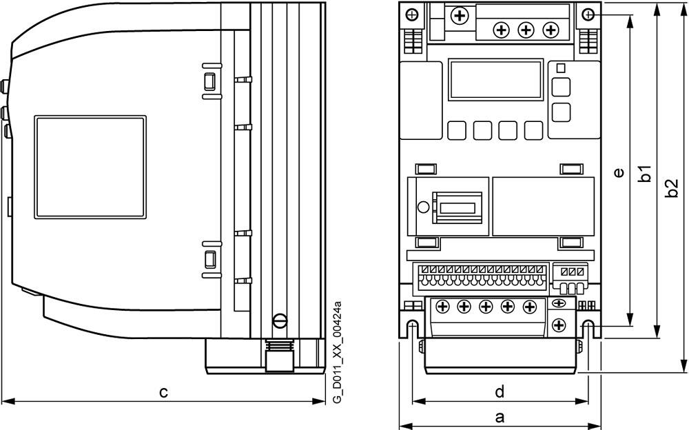 SINAMICS V20 1AC 200-240V -10/+10% 47-63Hz Nennleistung 0,75kW mit 150 % Überlast für 60 Sek. ungefiltert I/O: 4 DI, 2 DO,2 AI, 1 AO Feldbus: USS/MODBUS RTU mit eingebautem BOP Schutz: IP20/ UL offen Größe: AB 68x142x128 (BxHxT)