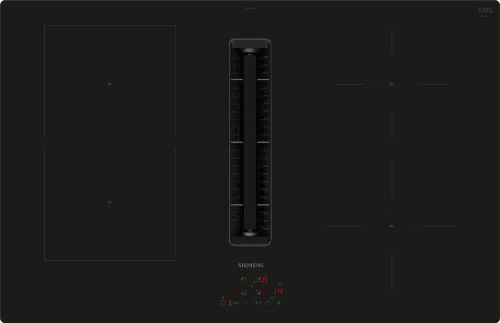 Siemens ED811BS16E iQ300 Induktionskochfeld mit Dunstabzug, 80cm breit, Rahmenlos aufliegend, schwarz
