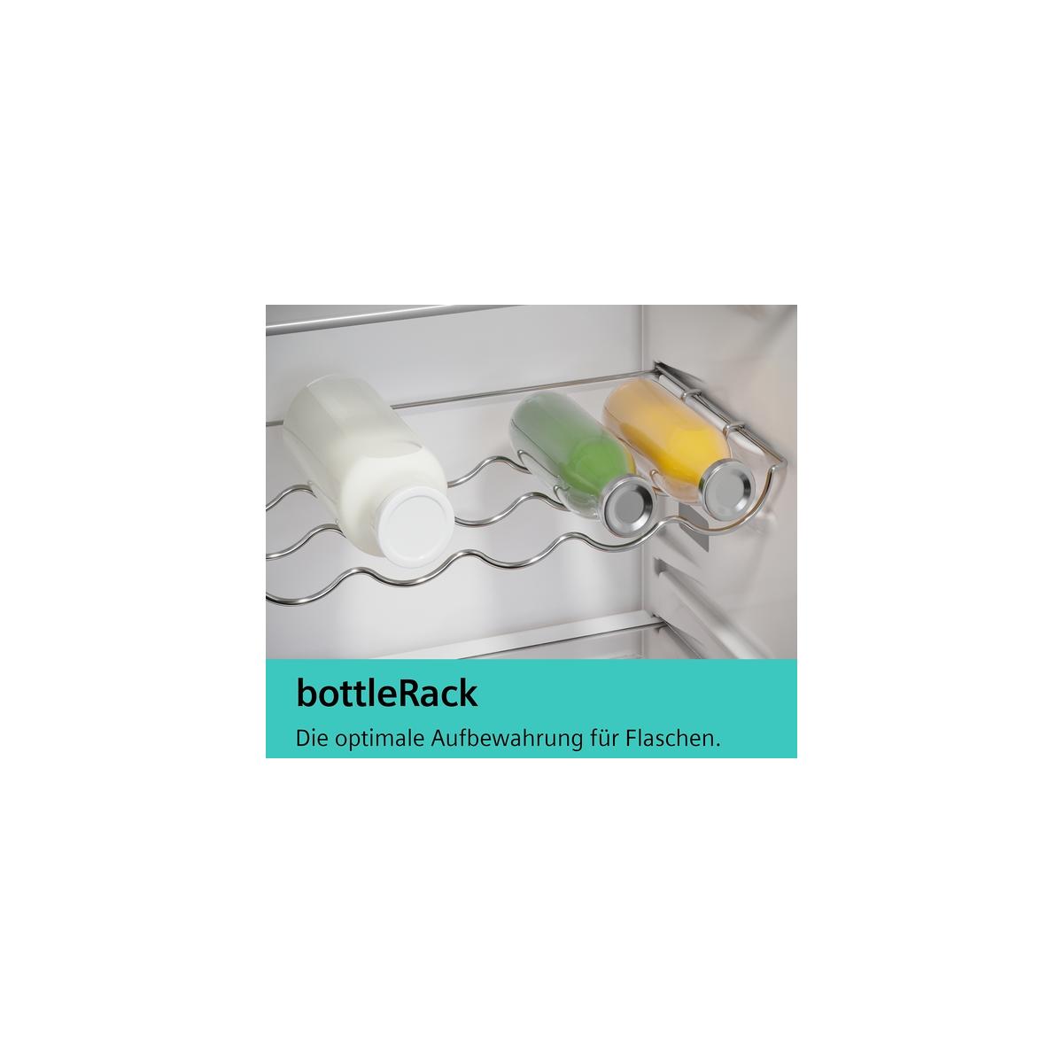 Flaschen brauchen ihren eigenen Platz im Kühlschrank. Unser bottleRack ist die perfekte Lösung: Ob große oder kleine Flaschen oder sogar Dosen ? in den optimal passenden Einzelregalen können Sie sie sicher, ohne lästiges ?Rattern? und immer in Reichweite aufbewahren.