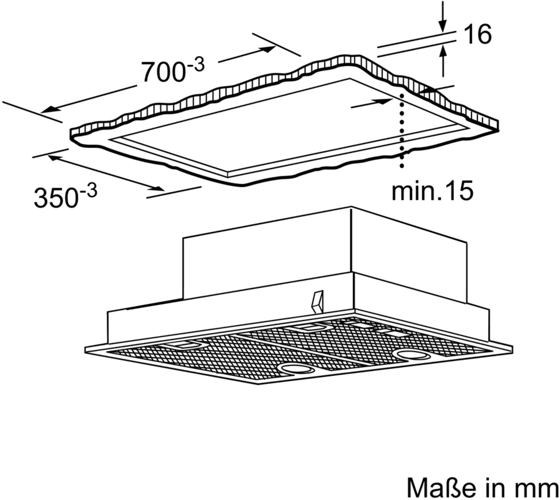 - Einbaumaße (HxBxT): 255 x 700 x 350 mm