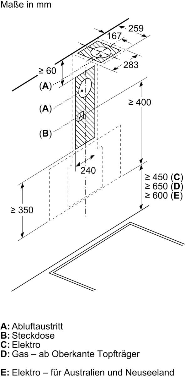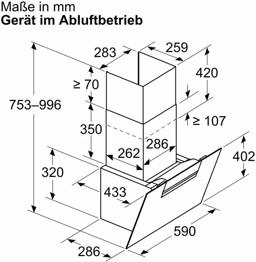 - Gerätemaße Abluft (HxBxT): 753-996 x 590 x 433 mm
