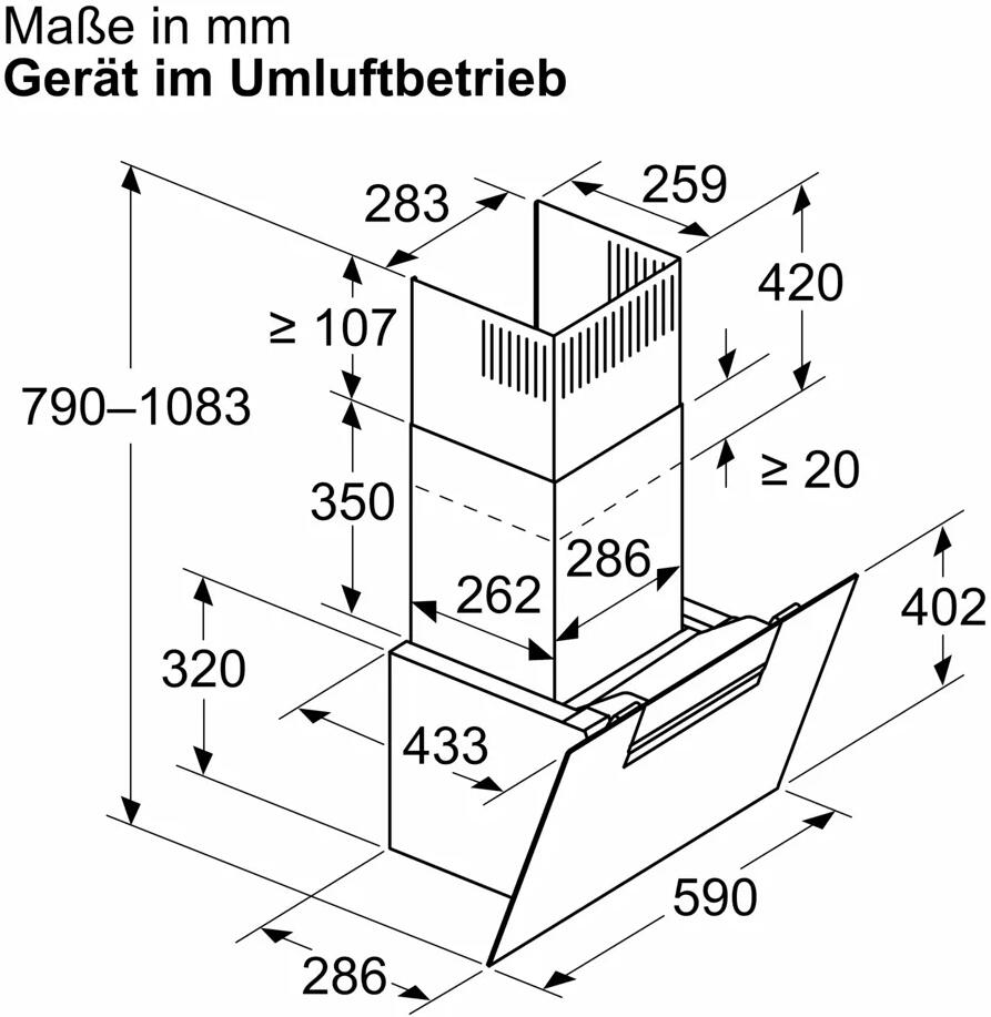 - Gerätemaße Umluft (HxBxT): 790-1083 x 590 x 433 mm