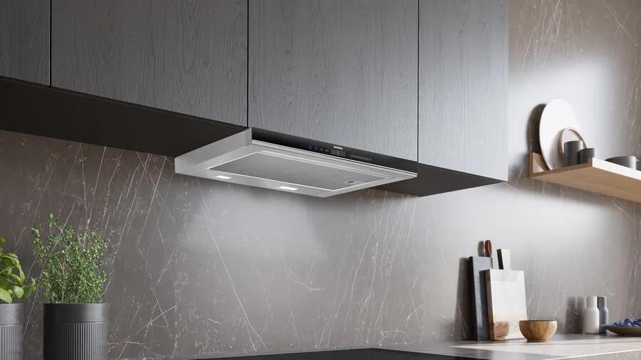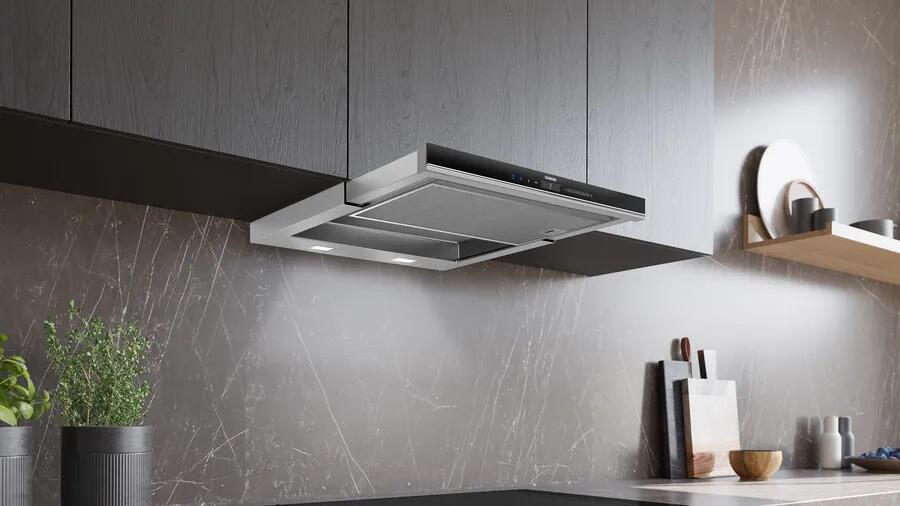 Die leistungsstarke Flachschirmhaube für eine fast unsichtbare Platzierung im Oberschrank.