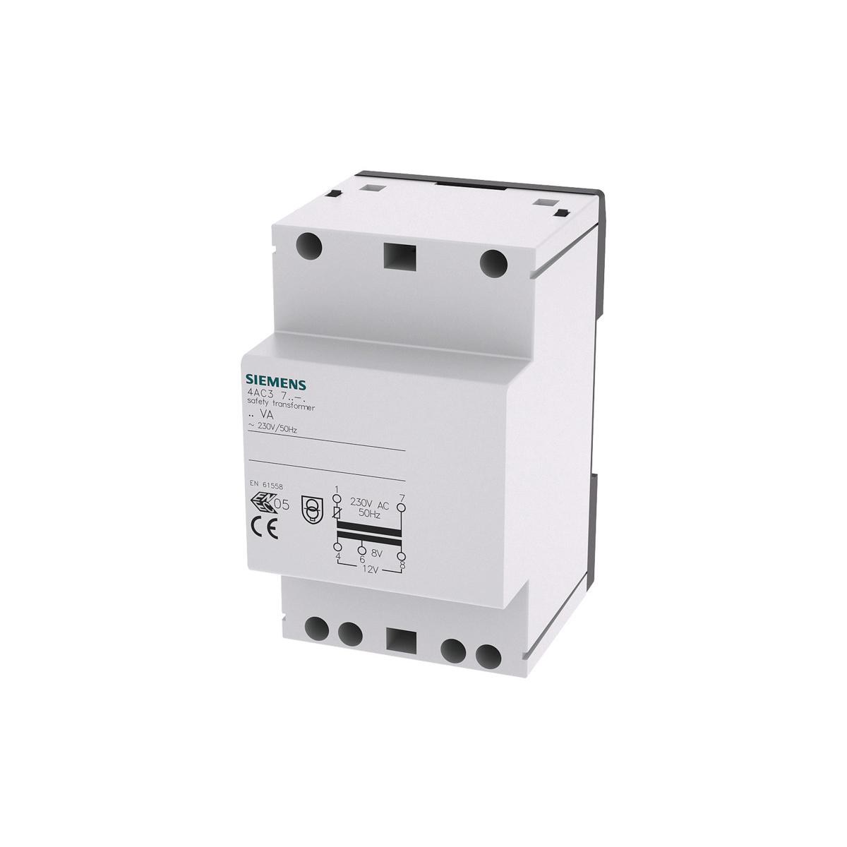 Sicherheitstransformator, 24VA Primär AC 230V, 50Hz, Sekundär 8V, 12V AC mit PTC-Sicherung, 3TE++ Sicherheitstransformatoren liefern eine Sicherheitskleinspannung zur Versorgung von Kontrollkreisen, Schaltrelais oder Insta Schütze. Diese Sicherheitstransformatoren bis 63 VA liefern eine Sicherheitskleinspannung zur Versorgung von Kontrollstromkreisen, Schaltrelais oder Insta Schütze im Dauerbetrieb als Wechselspannungsstromversorgung für AC 8 V, 12 V, 16 V, 24 V und 32 V. Siemens Sicherheitstransformatoren sind durch einen PTC-Widerstand gegen Kurzschluss oder mäßige Überlast geschützt. Ob für Infrastruktur oder für industrielle Anforderungen, Siemens bietet Sicherheitstrafos für alle Anwendungen und jedes Einsatzgebiet.