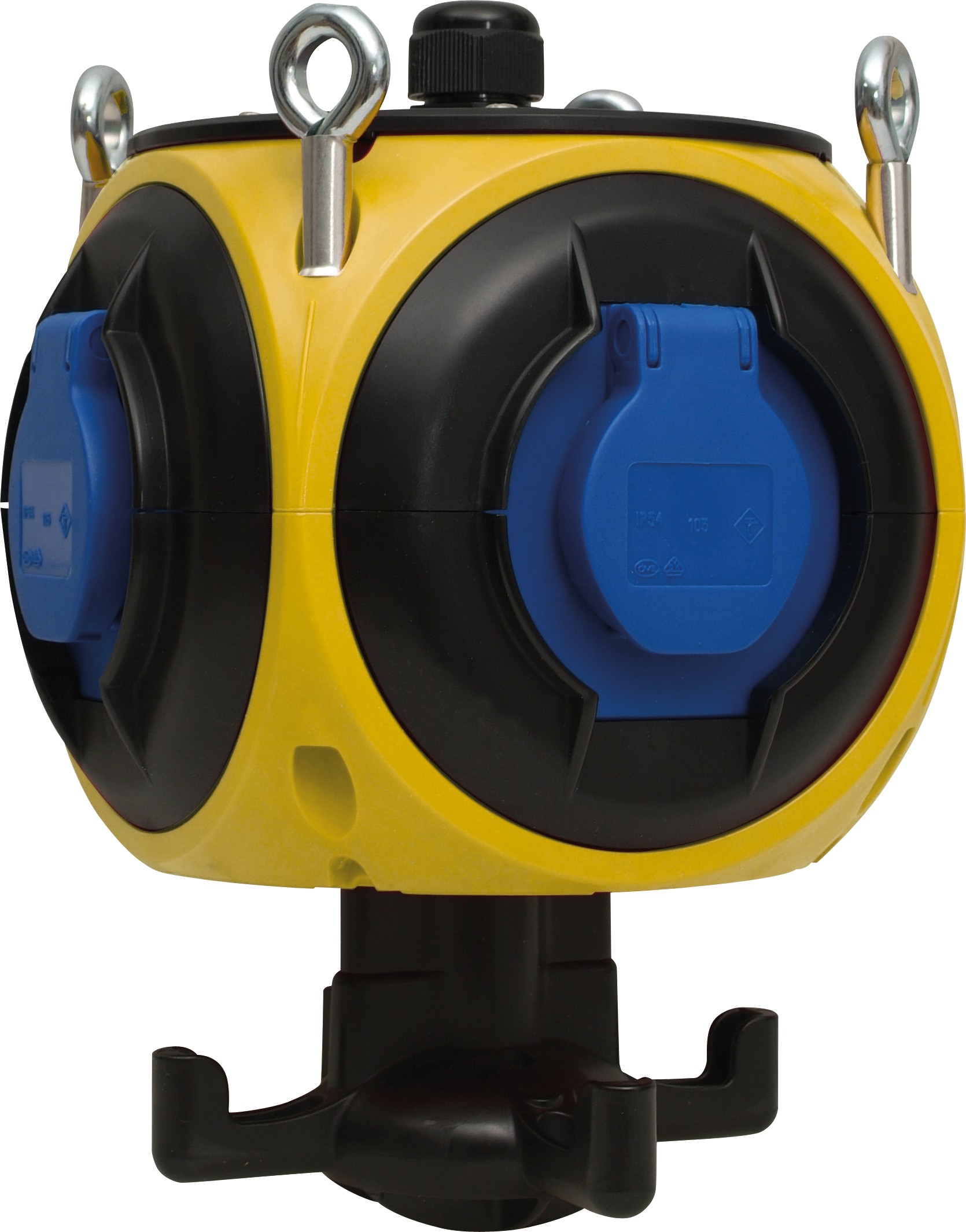 Sirox-Hängeverteiler, gelb/sw 4xSchuko inkl. Aufhänge-Set