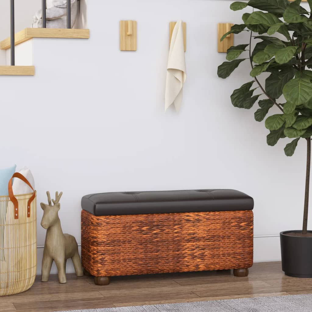 Diese Aufbewahrungsbänke in attraktivem, natürlichem Stil sind eine elegante und zugleich praktische Ergänzung für den Flur, das Wohnzimmer oder das Schlafzimmer. Langlebiger Rohrkolben: Rohrkolben ist ein strapazierfähiges, geflochtenes Material mit natürlichem Finish, das die Spuren und Unregelmäßigkeiten des Materials selbst beibehält und den Möbeln eine dekorative Note verleiht.Stabiles Sperrholz: Der Rahmen der Bank ist aus Sperrholz gefertigt. Sperrholz ist ein stabiles und stoßfestes Material. Es besitzt eine gleichmäßige Struktur ohne sichtbare Fasern und ist resistent gegen Verformung und Rissbildung.Reichlich Stauraum: Die Flurbank verfügt über ein großes Staufach unter der Sitzfläche, in dem du Kissen, Auflagen, Decken, Spielzeug und andere Sachen verstauen kannst.Bequeme Sitzgelegenheit: Die dicke Polsterung der Flurbank bietet optimalen Komfort.