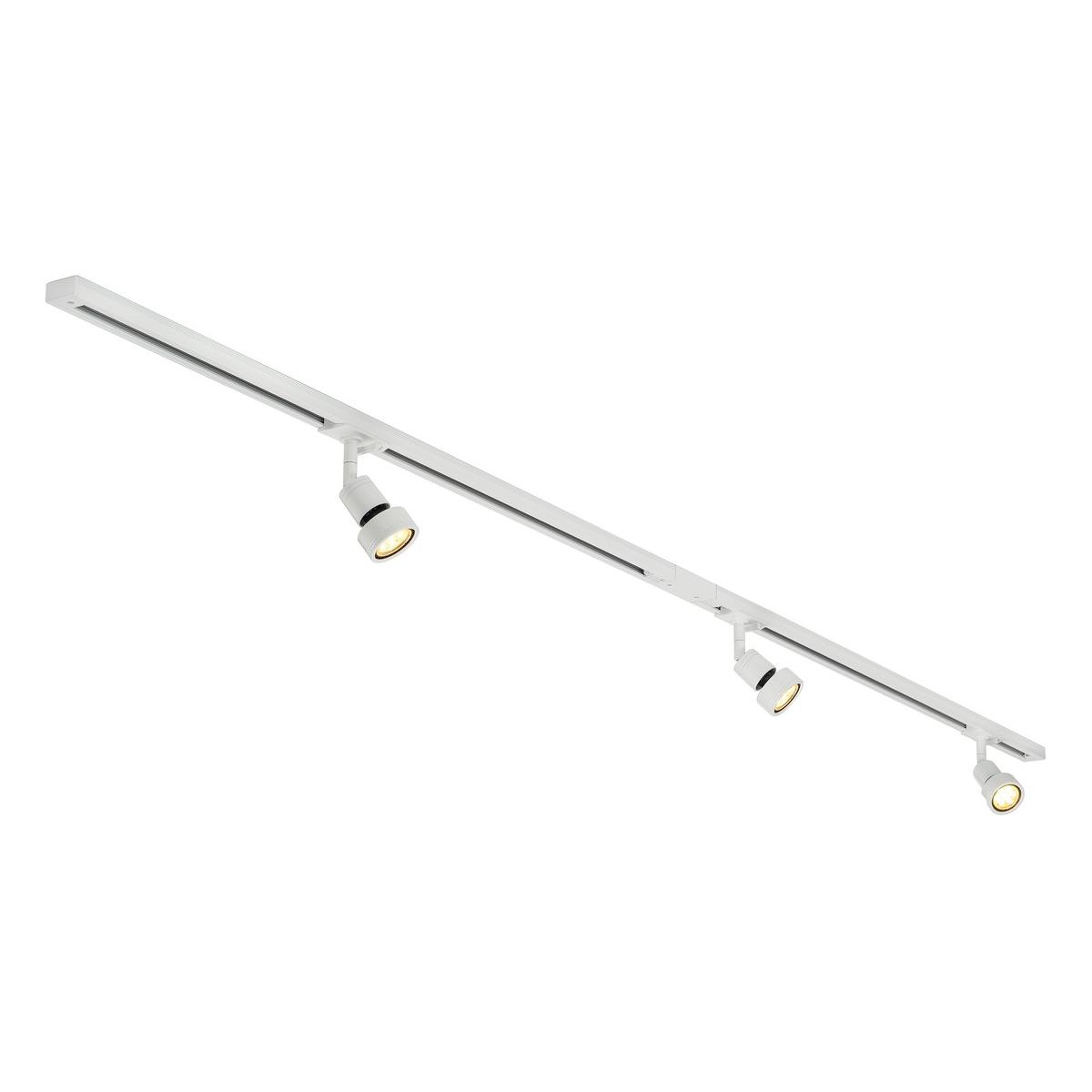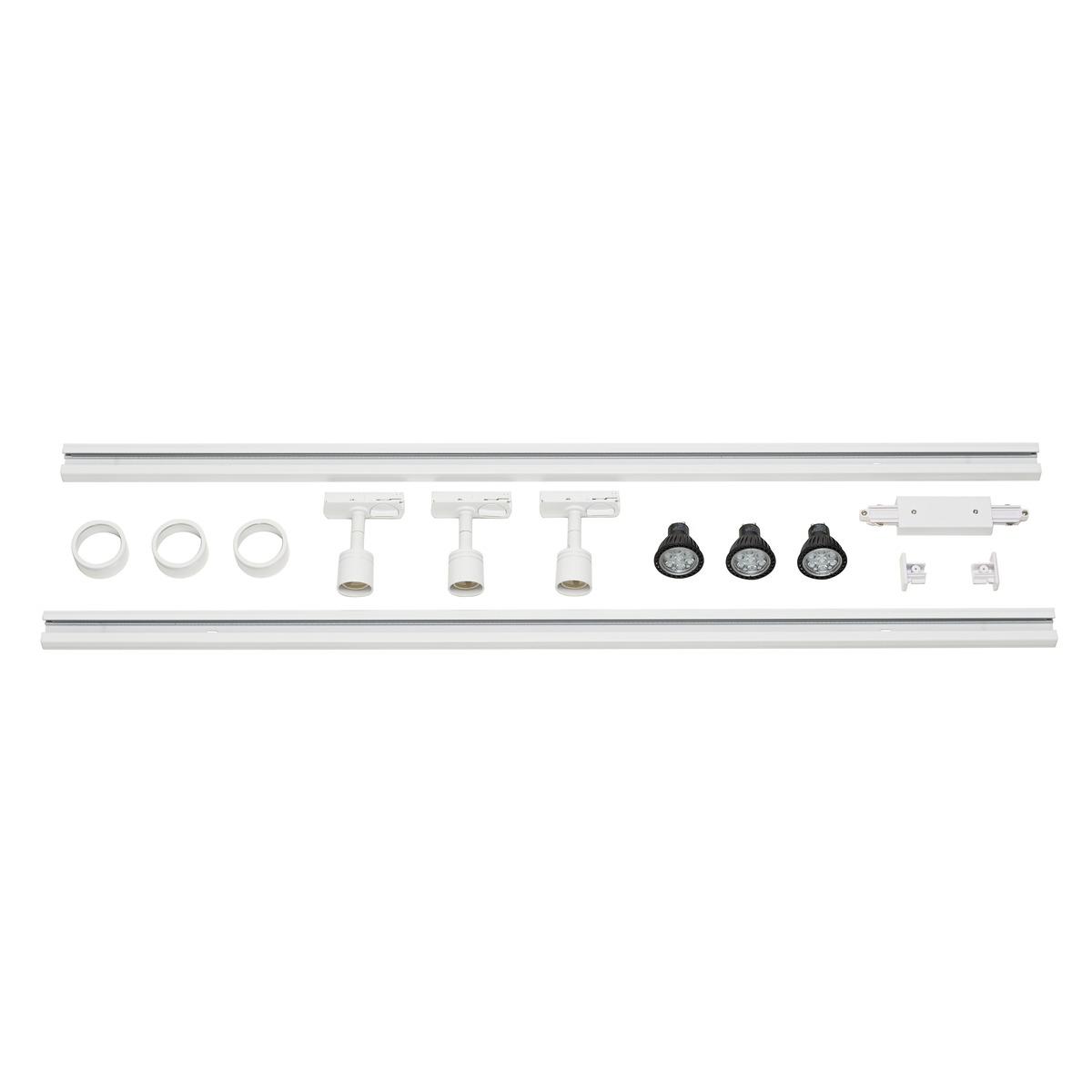 SLV 1Phasen-Hochvolt-Set dreiflammig, LED, inkl. 2x1 m Hochvoltschiene, 3xPurileuchtkopf, Längsverbinder, 2 Endkappen, 3x Dekoring, 3x LED GU10 Leuchtmittel, weiß (143191)