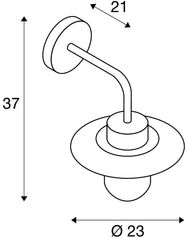 Die mit einer E27 Fassung ausgestatteten Wandleuchte MOLAT besteht aus lackiertem Aluminium und einem Glas, welches die verbaute Fassung abdeckt. Der am gekrümmten Ausleger montierte Leuchtenkopf ist starr nach unten gerichtet. Durch die Schutzart IP44 ist sie für den Außenbereich geeignet. Der elektrische Anschluss der in anthrazit verfügbaren Leuchte erfolgt an 230V Netzspannung.