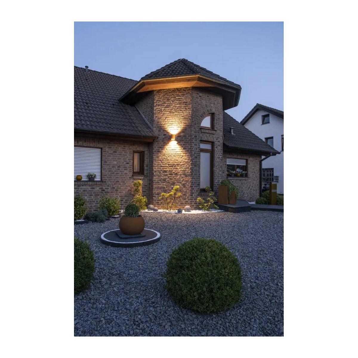 In facettenreichen Rosttönen verschönert RUSTY UP/DOWN Fassaden. Für einen einzigartigen Look, der die Wandaufbauleuchte auf jedem Untergrund besonders kontrastreich erscheinen lässt. Möglich ist das durch die spezielle chemische Behandlung des verwendeten FeCSi-Stahles, der bei jeder Witterung nur noch schöner wird. Dabei sind die indirekt abstrahlenden Leuchten mit energieeffizienten und langlebigen SMD LEDs bestückt. Um die Lichtstimmung zu beeinflussen, wechseln sie die Lichtfarbe vor der Installation über den integrierten CCT-Schalter (3000K/4000K). RUSTY UP/DOWN lässt sich einfach installieren und ist dank der Schutzart IP65 perfekt für Außenbereiche geeignet.
