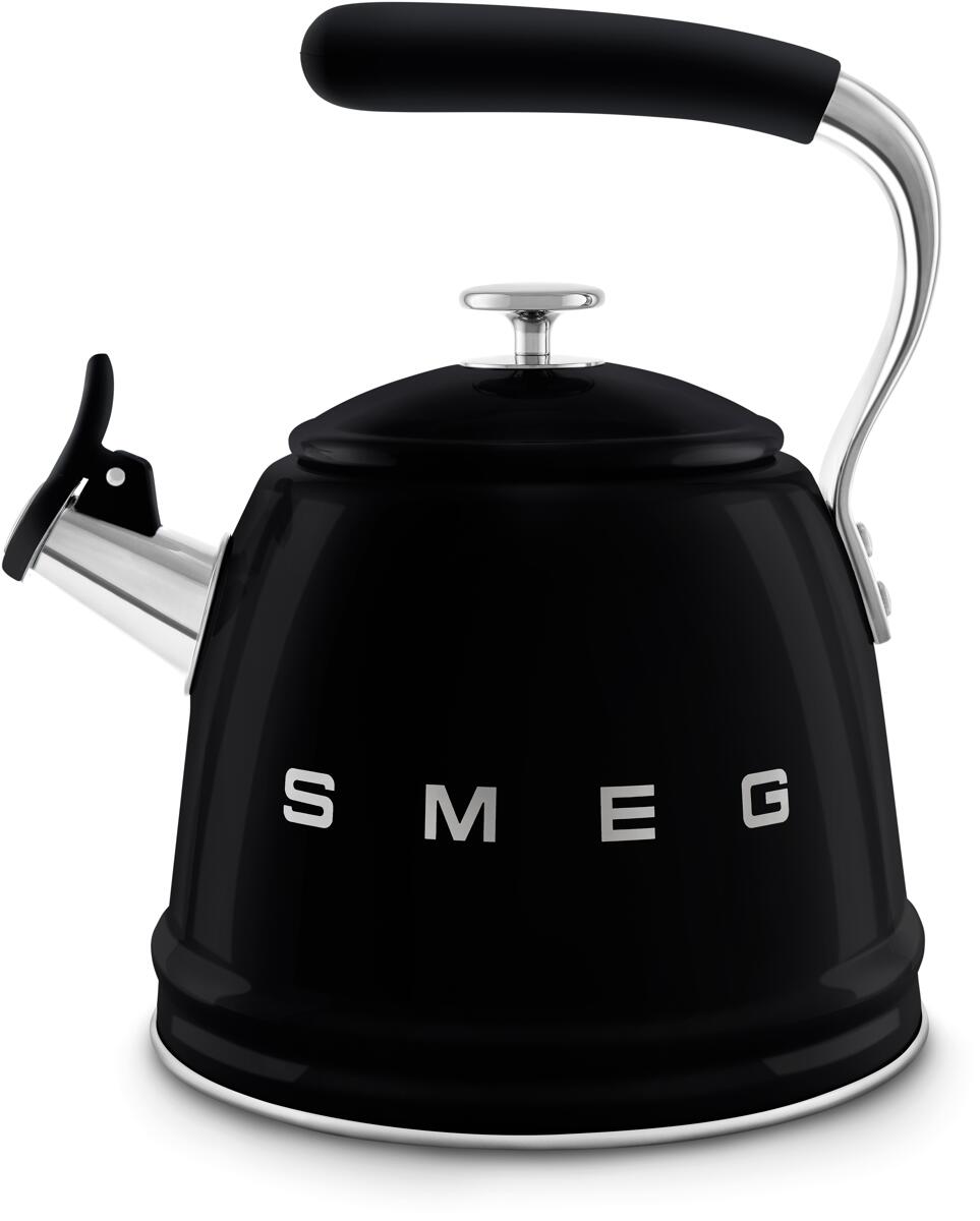 ARDEBO.de Smeg WKF01BL 50"s Style, Wasserkessel, 2,3 l Fassungsvermögen, für alle Herdarten inkl. Induktion, autom. öffnende Pfeife, leicht aufklappbarer Ausguss, schwarz