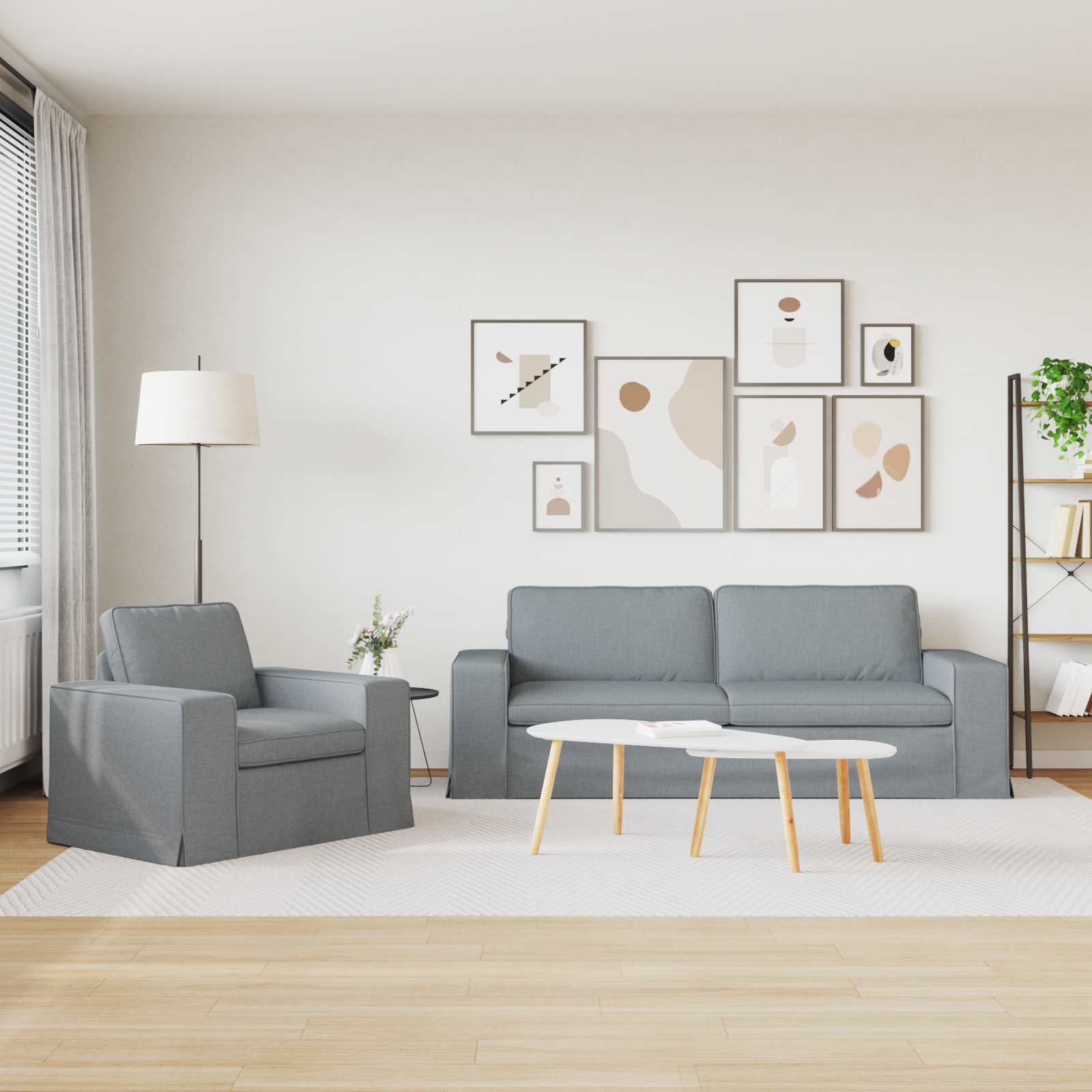 Das moderne Sofaset ist ein echter Hingucker in jedem Raum, der zeitgenössische Ästhetik mit hohem Komfort verbindet. Egal, ob du Freunde einlädst oder einen entspannten Abend machst, das modulare Design bietet dir flexible Möglichkeiten für jeden Anlass. Die eleganten Linien und die unaufdringliche Eleganz werten jedes Wohnzimmer oder Schlafzimmer auf. Die glatte Oberfläche und der atmungsaktive Stoff sind nicht nur schick, sondern laden auch zur Entspannung ein. Robuste Konstruktion: Der Metallrahmen und die Holzwerkstoff-Armlehnen machen das Sofa extrem haltbar und bieten auch bei täglichem Gebrauch zuverlässige Unterstützung. Die Materialien sind sorgfältig ausgesucht, damit dein Sofa über die Zeit optimal in Form bleibt. So bist du immer auf der sicheren Seite ? ideal für alle, die Stil und Stabilität schätzen. Bequeme Polsterung: Die Kissen mit Schaum- und Faserfüllung sorgen für ein super bequemes Sitzen, das sich perfekt deinem Körper anpasst. Egal, ob du Gäste bewirtest oder einfach nur entspannst, dieses Sofa unterstützt eine gesunde Haltung und hilft dir, Stress abzubauen. Modulares Design: Das Sofaset lässt sich flexibel konfigurieren. Pass es an enge Räume an oder erweitere es für große Zusammenkünfte. Diese Anpassungsfähigkeit macht es für unterschiedliche Gegebenheiten geeignet und bietet dir flexible Sitzmöglichkeiten, die auf deine Bedürfnisse abgestimmt sind. Brötchenfüße: Die stylischen Brötchenfüße sorgen nicht nur für Stabilität, sondern bringen auch einen modernen Touch ins Design. Sie sind aus Kunststoff gefertigt und bieten zuverlässigen Halt, während sie dem Sofa einen zeitgemäßen Look verleihen. Einfache Pflege und Wartung: Deinen neuen Sitzplatz sauber zu halten ist kinderleicht ? ein trockenes Tuch reicht, um die Oberfläche zu reinigen. So bleibt dein Sofa immer frisch und zeitgemäß. Mit dieser Pflege-Routine bleibst du cool und gemütlich, natürlich im stimmigen Stil.