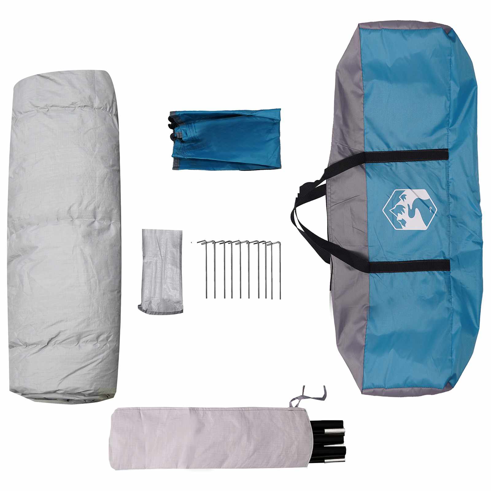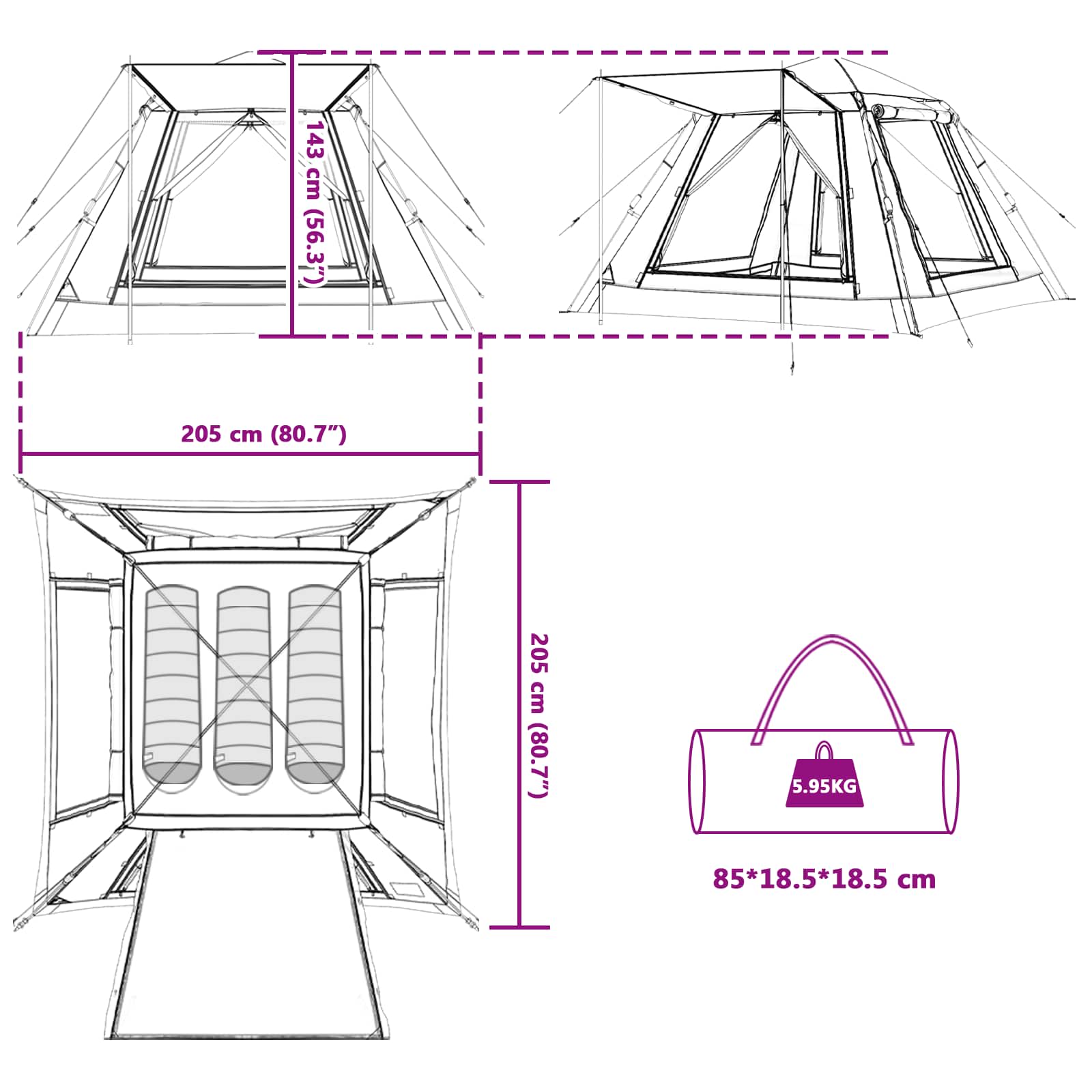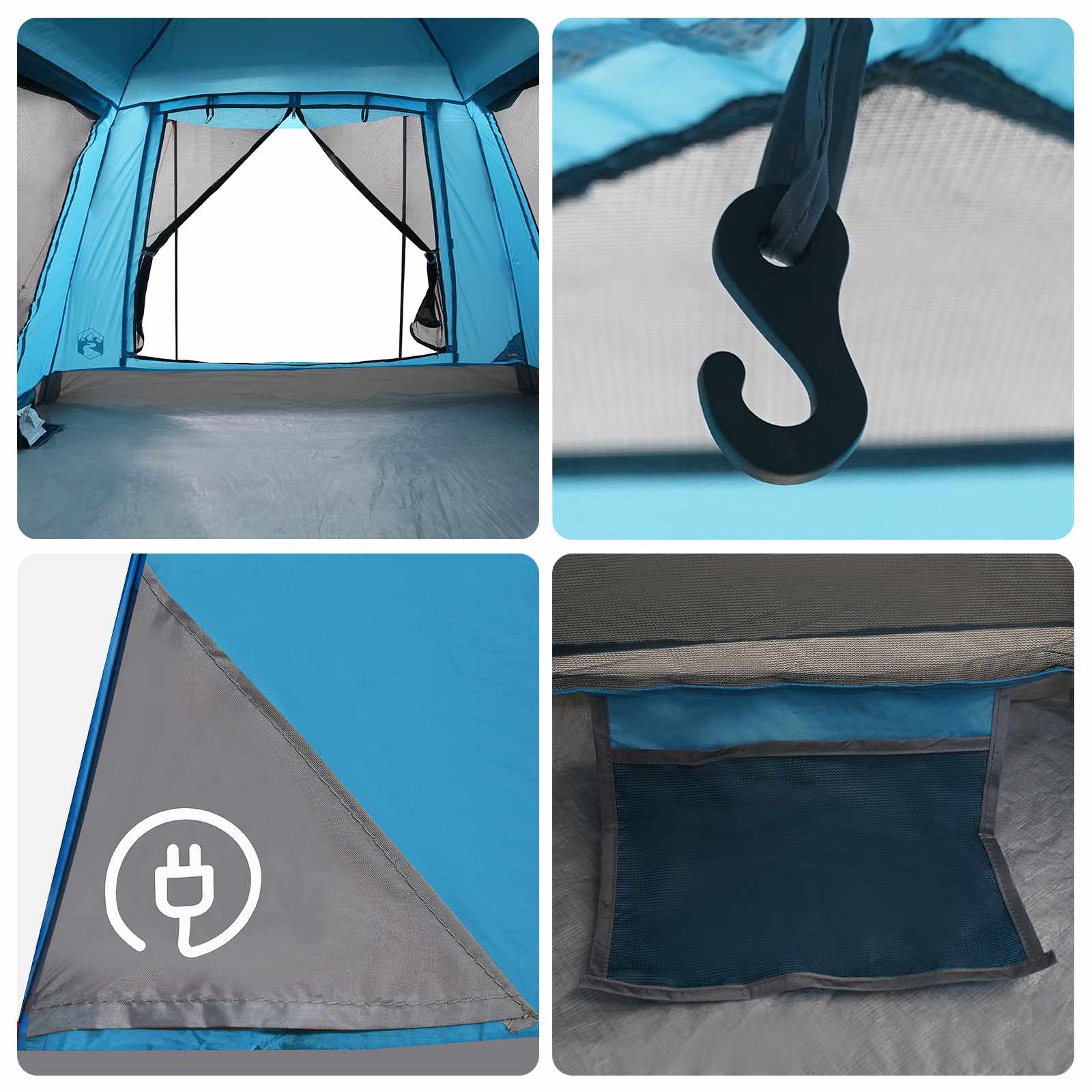 Dieses Instant Zelt ist eine tolle Lösung für alle, die beim Campen Komfort und Bequemlichkeit möchten. Es lässt sich schnell aufbauen und ist robust ? perfekt für Abenteuer im Sommer. Mit Platz für drei Personen und einem coolen modernen Design passt es super zu unterschiedlichen Outdoor-Situationen. Das kompakte und tragbare Design macht es zu einer Top-Wahl für alle, die das Abenteuer lieben und zuverlässigen Schutz suchen. Wasserdichtes Polyester Material Aus 185T Polyester mit PU-Beschichtung, das euch auch bei einem Regenschauer trocken hält. Und: es ist UV-beständig, damit ihr auch bei strahlendem Sonnenschein geschützt seid. Umfassendes Komponentenpaket Kommt mit vorinstallierten Stangen, einer abnehmbaren Regenplane für besseren Schutz, sechs Abspannleinen für Stabilität und einer Tragetasche für easy Transport. Die 10 mitgelieferten Heringe sorgen dafür, dass das Zelt selbst bei windigem Wetter bleibt, wo es sein soll. Intelligente Designmerkmale Mit zwei Reißverschlusstüren für leichten Zugang und Belüftung, leicht erreichbaren Netzfüchern für eure Sachen. Der praktische E-Port sorgt für Stromzugang und das Schnellverschlusssystem ermöglicht ruckzuckes Aufbauen und Abbauen. Praktische Anwendungen Ideal für Sommer-Camping, Rucksackreisen, Festivals oder einfach mal fürs Wochenende. Durch die speziellen Eigenschaften ist es super geeignet für all die, die in der Natur zuverlässigen Schutz suchen. Einfache Pflegehinweise Ein feuchtes Tuch reicht, um das Zelt sauber zu halten, und sorgt dafür, dass es auch nach dem Campingtrip gut aussieht. Ihr braucht keine starken Reinigungsmittel; ein einfaches Abwischen reicht aus.