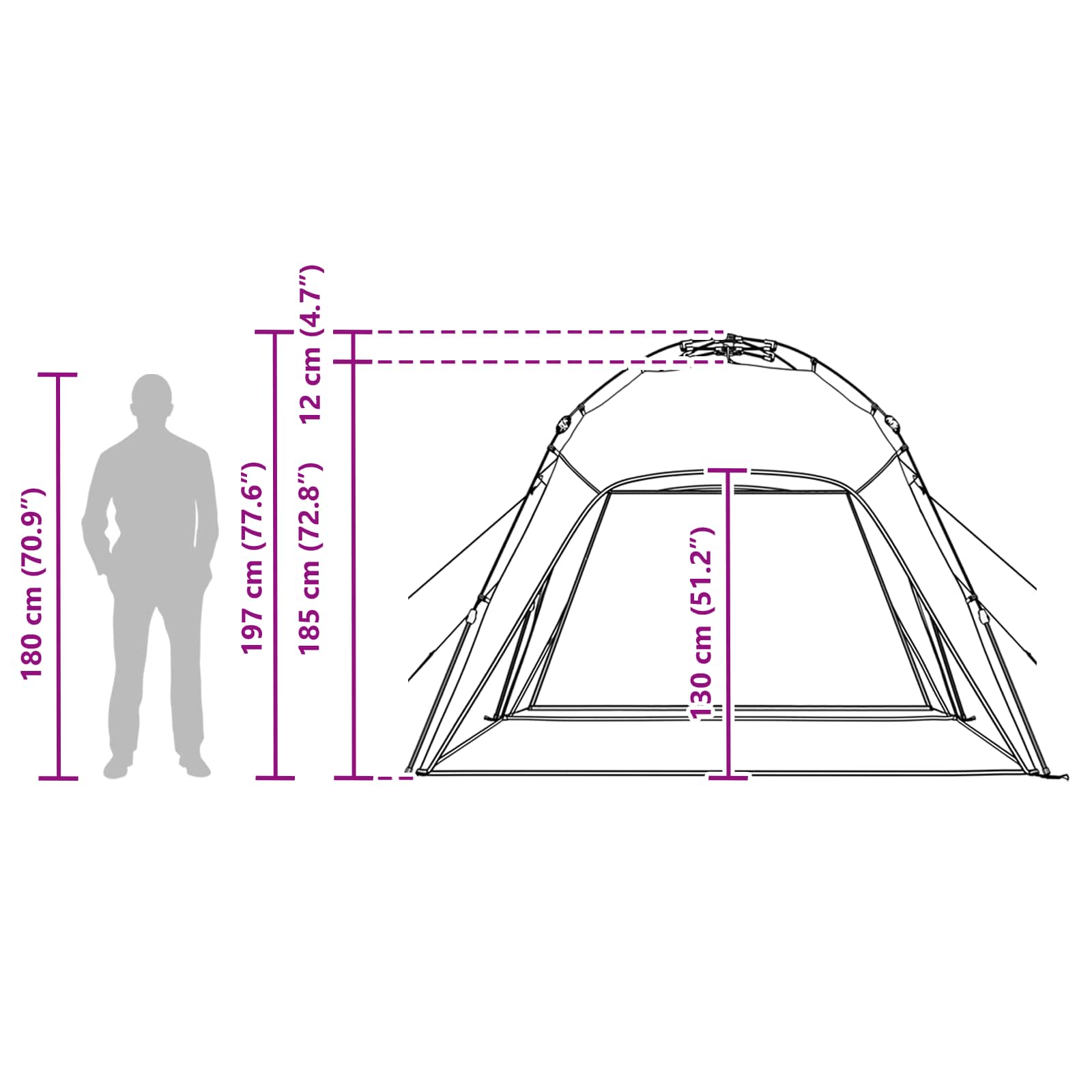 Das moderne Instant-Zelt ist ein Must-Have für jeden Outdoor-Fan, designed für ein reibungsloses Camping-Erlebnis. Das Zelt hat ein stylisches und funktionales Design und ist perfekt für alle, die einen zuverlässigen Unterschlupf suchen. Ob für ein Solo-Abenteuer oder einen Ausflug mit Freunden, es bietet Flexibilität und passt in jede Situation. Die Einrichtung geht schnell und einfach und hält dich komfortabel und geschützt vor dem Wetter. Material: Hergestellt aus robustem Stahl, bietet das moderne Instant-Zelt Langlebigkeit auf allen Terrains. Die Stahlaußenstruktur hält auch schlechtem Wetter stand und sorgt für ein zuverlässiges Outdoor-Erlebnis. Das stabile Gerüst bekräftigt die Haltbarkeit des Zeltes und trotzt den Elementen, ohne an Stabilität zu verlieren. Inklusive Komponenten: Das Camping-Paket kommt mit allem, was du brauchst: einem Zelt, einer Wand, vier stabilen Abspannseilen zur Sicherung, acht Heringen für festen Halt und einem Tragbeutel für den einfachen Transport. Alle Teile machen den Camping-Prozess einfach und ordentlich, alles kann gut im Tragbeutel verstaut werden. Einfache Einrichtung und Nutzung: Dank eines Schnellfreigabefunks sorgt das Zelt für einen blitzschnellen Aufbau. Die versteckten Reißverschlüsse sorgen für einen sauberen Look, der Stil und Funktion verbindet. Mit mehreren Türen kannst du ganz einfach rein und raus gehen, was schnelle Übergänge und gute Belüftung bedeutet. Vielseitiger Outdoor-Einsatz: Ideal für Sommer-Camping, passt sich das moderne Instant-Zelt an unterschiedlichste Outdoor-Situationen an. Mit einer Fläche von 6,76 m² hast du locker Platz zum Chillen und Schlafen. Für jeden begeisterten Camper wird dieses Zelt ein Rückzugsort mitten in der Natur. Pflege: Pflege ist einfach, ein Wisch mit einem feuchten Tuch genügt. Diese einfache Methode verlängert die Lebensdauer des Zeltes und sorgt dafür, dass es bei jedem Gebrauch frisch bleibt. Das kompakte Falt-Design macht die Lagerung nach dem Camping leicht und sorgt für extra Komfort.
