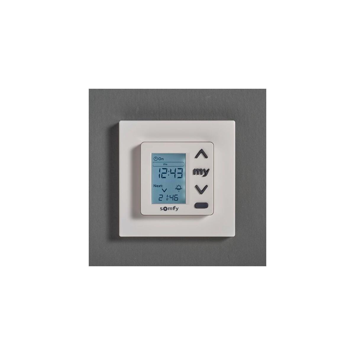 Der neue Chronis Uno ist in erster Linie eine auf Benutzerfreundlichkeit optimierte Zeitschaltzeituhr für Rollladen, Screens oder Raffstores, mit einer Reihe von nützlichen Funktionen im Hintergrund, bei denen man nicht in verschiedene Menüs eintauchen muss, um die Kontrolle zu behalten. Mit den Maßen 50x50 ist er mit handelsüblichen Rahmen führender Schalterhersteller kompatibel, falls der mitgelieferte Rahmen nicht gewünscht ist. Zusätzlich zu den Öffnungs- und Schließzeiten kann eine Zwischenposition manuell mit der my-Taste und automatisch mit der Zuordnung zu einer Uhrzeit erreicht werden.