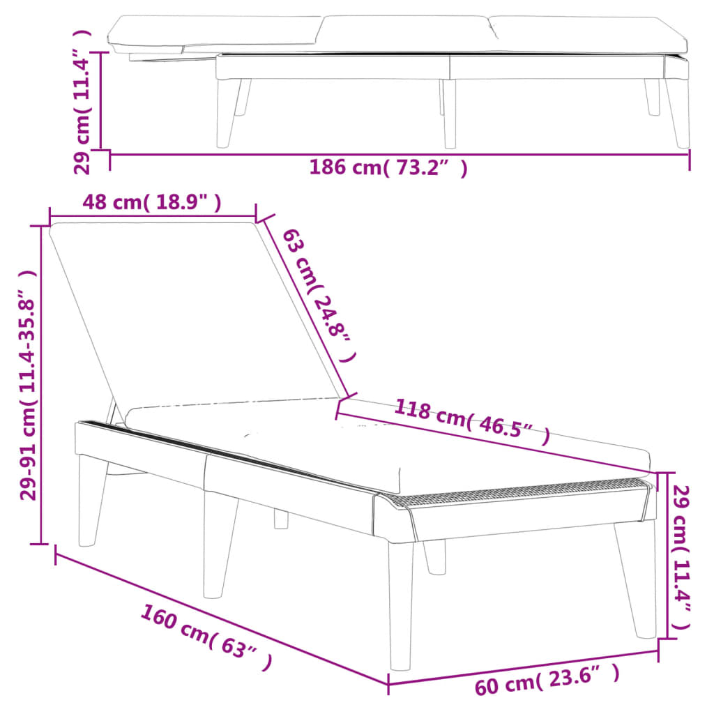 - Abmessungen (in Liegeposition): 186 x 60 x 29 cm (L x B x H)