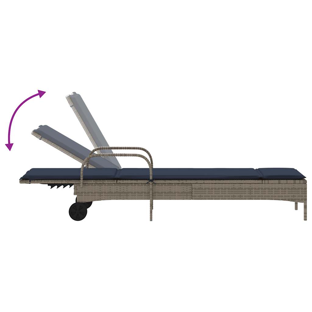 Entspannen Sie sich und genießen Sie die Natur in dieser bequemen Sonnenliege! Langlebiges Material: PE-Rattan, auch als Polyrattan bekannt, ist ein robustes, pflegeleichtes Kunststoffmaterial, das wie natürliches Rattan aussieht. Es ist leicht, einfach zu reinigen und wird aufgrund seiner Langlebigkeit und Wetterbeständigkeit häufig für Gartenmöbel verwendet.Verstellbare Rückenlehne: Dieses Gartenmöbel verfügt über eine Rückenlehne mit 3 verstellbaren Positionen, sodass Sie ganz einfach die bequemste und geeignetste Position zum Entspannen finden.Müheloses Bewegen: Dank der 2 Räder können Sie dieses Gartenmöbel einfach an den gewünschten Ort bewegen.Bequemes Sitzerlebnis: Dieses Gartenmöbel mit dick gepolstertem Kissen bietet ein bequemes Sitzerlebnis. Abnehmbarer und waschbarer Bezug: Das Sitzkissen verfügt über einen abnehmbaren Bezug zum einfachen Waschen und Pflegen. Gut zu wissen:Damit Ihre Gartenmöbel schön bleiben, empfehlen wir Ihnen, sie mit einem wasserdichten Bezug zu schützen.
