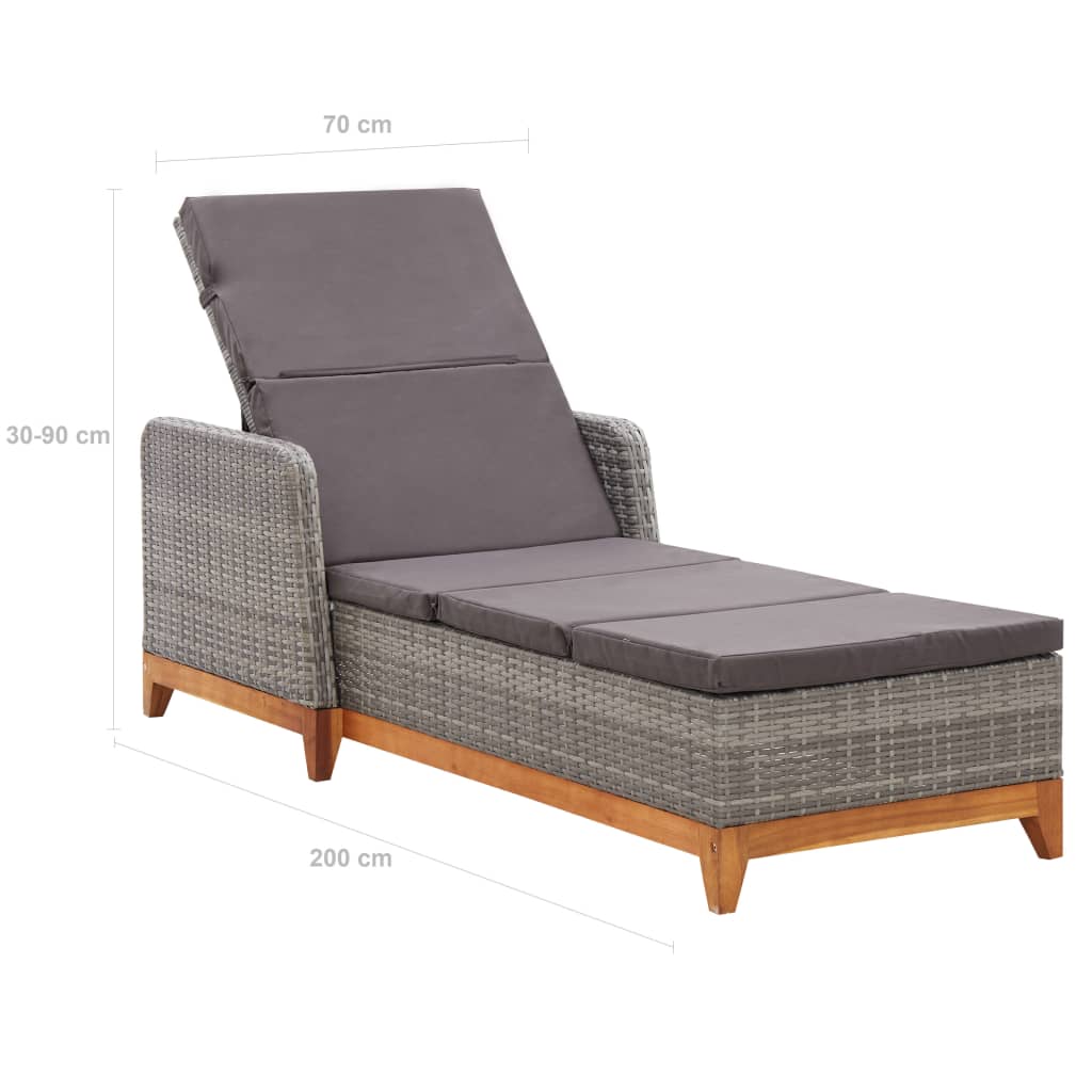Diese hochwertige Poly Rattan Sonnenliege kombiniert Stil und Funktionalität und wird der neue Mittelpunkt Ihres Gartens oder Ihrer Terrasse sein. Dank des witterungsbeständigen PE-Rattans ist die Sonnenliege leicht zu reinigen, strapazierfähig und für die tägliche Nutzung bestens geeignet. Die Liege verfügt über einen stabilen, pulverbeschichteten Stahlrahmen und ein Untergestell aus massivem Akazienholz, wodurch sie sehr stabil, robust und langlebig ist. Die Rückenlehne lässt sich in die für Sie bequemste Position verstellen, während die integrierten Armlehnen und die dicken, abnehmbaren Polster für optimalen Sitz- und Liegekomfort sorgen. Der Polsterbezug kann leicht entfernt und gewaschen werden. Die Sonnenliege ist einfach zu montieren. Hinweis: Wir empfehlen, das Sitzmöbel bei Regen, Schnee und Frost abzudecken.