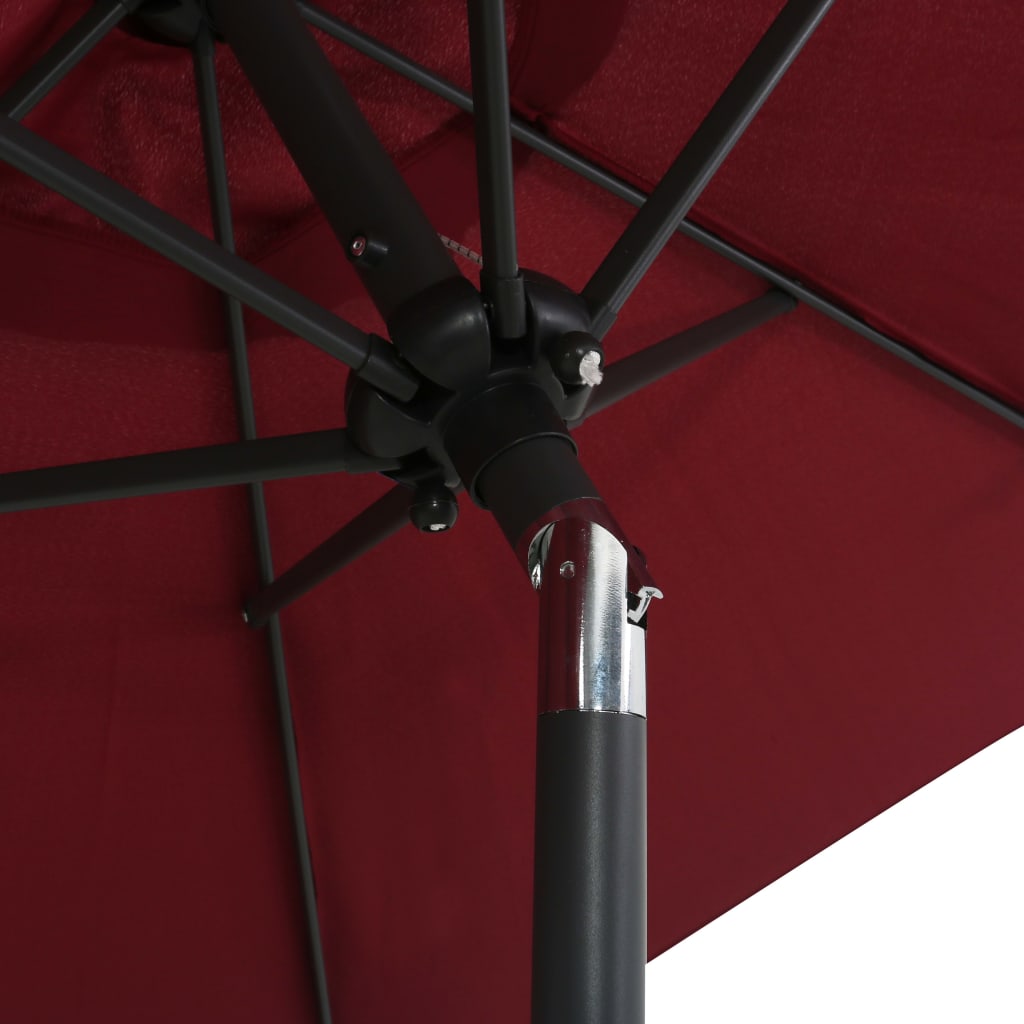Dieser elegante Sonnenschirm ist die perfekte Wahl, um Sie sowohl vor schädlichen UV-Strahlen als auch vor Feuchtigkeit zu schützen. Der Schirm kann an Ihrem derzeitigen Schirmständer oder, falls ein Loch in der Mitte Ihres Tisches vorhanden ist, an Ihrem Tisch montiert werden. Er wird Ihnen einen großartigen Sonnenschutz bieten, wenn Sie mit Ihrer Familie auf der Veranda, der Terrasse oder in Ihrem Garten Bücher lesen oder Kaffee trinken. Dank der Kurbel und des neigbaren Designs ist der Regenschirm zusammenklappbar und leicht zu transportieren. Der Sonnenschirmstoff besteht aus UV-Schutz- und Anti-Fade-Polyester und bietet Ihnen optimalen Schutz vor der Sonne. Die robuste Aluminiumstange mit Pulverbeschichtung sowie die 6 stabilen Metallstreben tragen zu seiner Stabilität bei und machen den Sonnenschirm besonders langlebig.