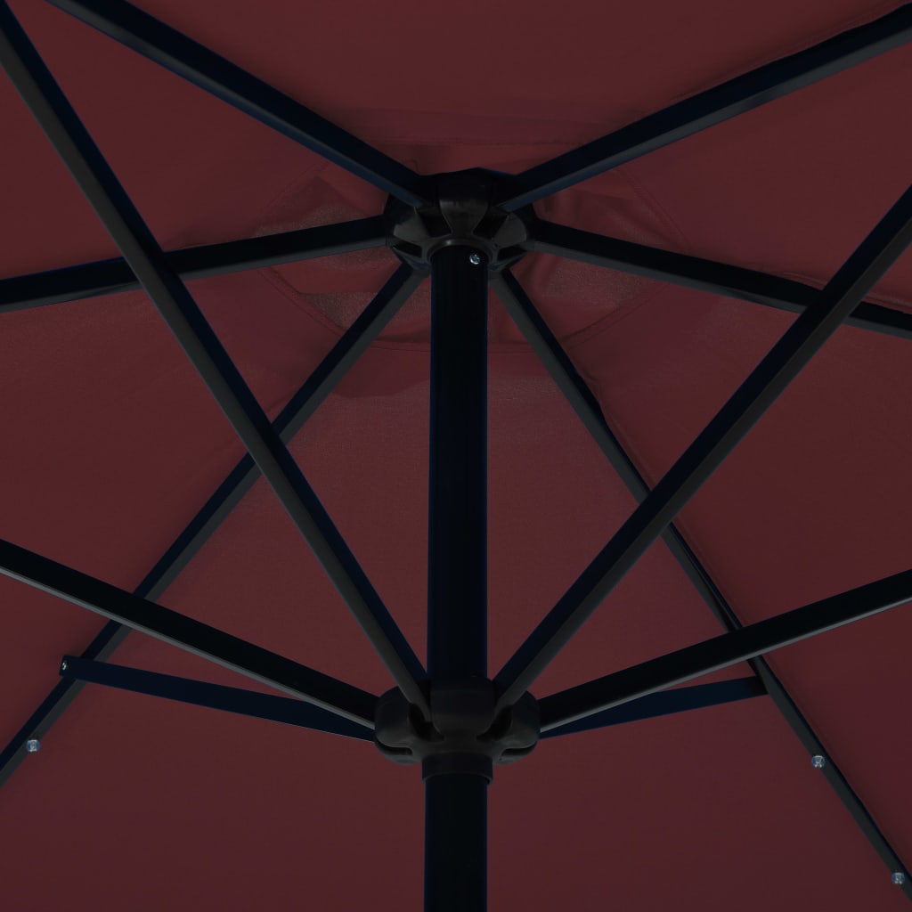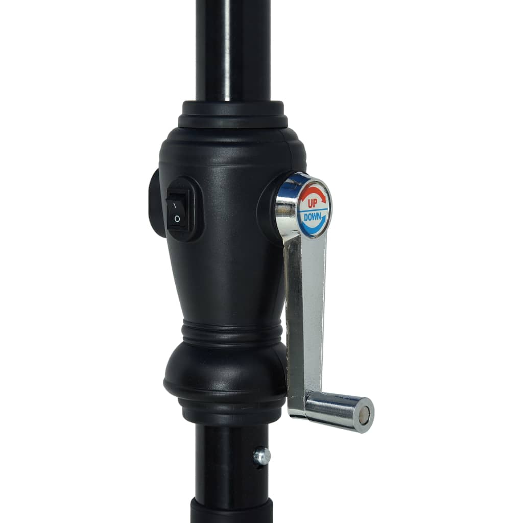 Dieser elegante Schirm mit LED-Beleuchtung schafft nicht nur ein schattiges Plätzchen in deinem Outdoor-Bereich, sondern bietet auch Schutz gegen schädliche UV-Sonnenstrahlen. Aus UV-beständigem und verblassfestem Polyester gefertigt, bietet dieser Sonnenschirm optimalen Schutz vor schädlichen Sonnenstrahlen und ist leicht zu reinigen. Er ist mit 18 solarbetriebenen LEDs ausgestattet, die Ihren Außenwohnbereich automatisch beleuchten und ein gemütliches und romantisches Ambiente schaffen, wenn die Sonne untergeht. Das exklusive Design ermöglicht es Ihnen, den Sonnenschirm zu kippen, damit Sie sich vor der Sonne am Horizont schützen können. Der starke Stahlmast und die 6 robusten Schirmrippen verleihen dem Ampelschirm Stabilität und Langlebigkeit. Dieser Sonnenschirm lässt sich dank des Kurbelmechanismus einfach öffnen und schließen. Bitte beachten: Wir empfehlen, die Schirmbespannung mit einem Imprägnierspray zu behandeln, wenn es starken Regenfällen ausgesetzt ist.