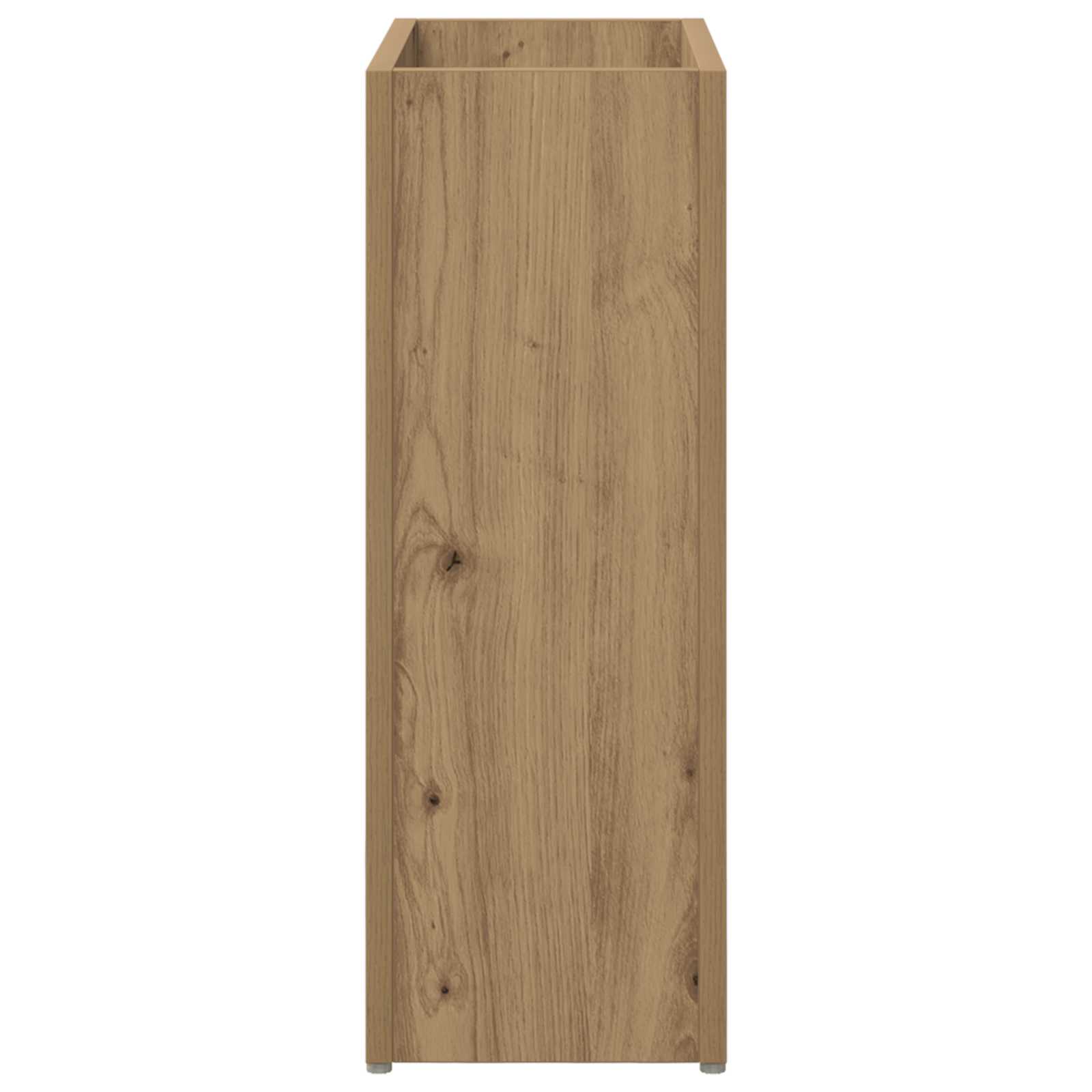 Dieser Holzregenschirmständer vereint Funktionalität und Stil und ist ein Must-have für Ihren Flur oder Ihre Garderobe. Er kombiniert modernes Design mit seiner glatten, rechteckigen Form und bietet Platz für Regenschirme und weitere Haushaltsgegenstände. Stellen Sie sich vor, wie dieser Ständer das Gesamtbild Ihres Zuhauses aufwertet. Seine schlichte Form passt perfekt zu modernen Innenräumen und hilft, Ordnung zu halten, ohne dabei auf Eleganz zu verzichten. Holzwerkstoffbau Der Regenschirmständer aus Holzwerkstoff bietet robuste Haltbarkeit und bleibt auch bei täglichem Gebrauch stabil. Die Materialwahl sorgt für eine ansprechende Optik und Textur, die sich ideal in moderne Wohnräume einfügt. Rechteckige Form Mit seinem schlanken Design passt der Ständer perfekt in schmale Flure oder Garderoben. Die Form erleichtert das Platzieren an Wänden und macht ihn ideal für kleine Räume, ohne wertvollen Stauraum einzubüßen. Vielseitige Aufbewahrung Neben Regenschirmen bietet der Ständer Platz für Schals, Handschuhe und kleine Haushaltsartikel, was ihn zur optimalen Lösung für einen aufgeräumten Eingangsbereich macht. Einfach zu reinigende Oberfläche Ein feuchtes Tuch reicht aus, um die glatte Oberfläche schnell zu reinigen. Vermeiden Sie aggressive Chemikalien und Schrubben, um die elegante Optik dauerhaft zu bewahren ? perfekt für den Alltag. Funktioneller, moderner Stil Das minimalistische Design mit klaren Linien steigert die Ästhetik und bietet eine praktische Lösung, die Funktionalität und Eleganz harmonisch vereint ? passend für jedes moderne Zuhause.