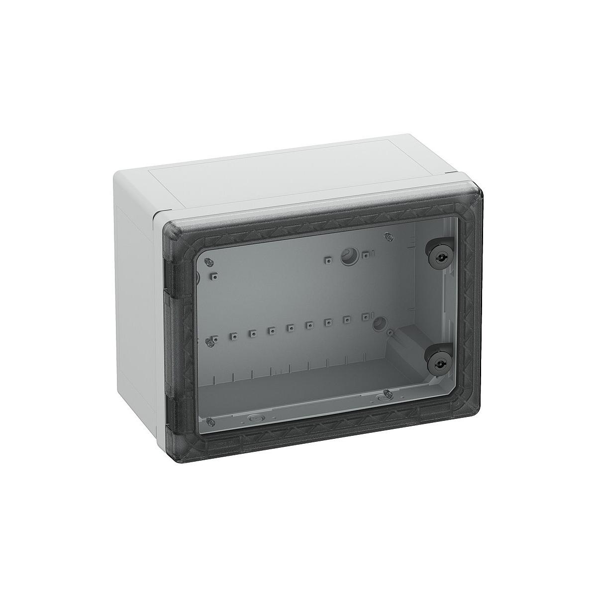 Schaltschrank - Industrie Qualität, geeignet für die Installation in rauen Umgebungen und im ungeschützten Außenbereich, Kasten und Rahmen: glasfaserverstärktes Polycarbonat, grau, ähnlich RAL 7035, Tür: Polycarbonat.