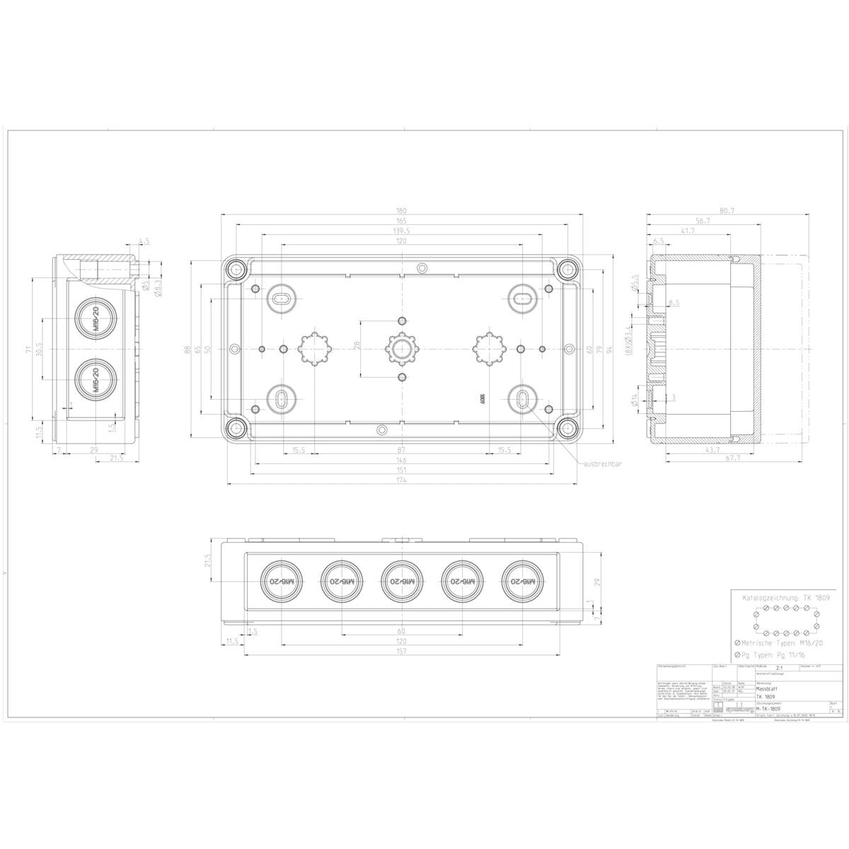 Spelsberg TK PS 1809-6-m Leergehäuse, metrische Vorprägungen, IP66, 180x94x57 mm, grau (10541001)