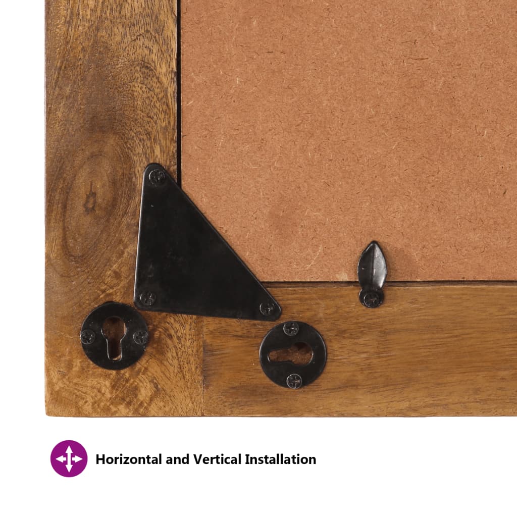 Dieser Spiegel mit Holzrahmen ist eine perfekte Dekoration für dein Zuhause. Massives Mangoholz: Massives Mangoholz ist ein robustes, tropisches Hartholz, aus dem sich robuste Möbel herstellen lassen. Seine schöne Holzmaserung macht jedes Möbelstück zu einem Unikat. Der Rahmen aus massivem Mangoholz verleiht dem Spiegel einen rustikalen Charme und sorgt gleichzeitig für Langlebigkeit.Wandmontage: Der Kosmetikspiegel lässt sich an der Wand befestigen, wodurch er sich sehr gut für kleinere Räume eignet.Klares Spiegelbild: Der Glasspiegel bietet eine klare Spiegelung. So kannst du ein schönes und natürliches Spiegelbild genießen, wenn du vor dem Spiegel steht.Breite Anwendungen: Du kannst den Wandspiegel zum Dekorieren deines Schlafzimmers, Flurs, Wohnzimmers, Badezimmers und jedes anderen Ortes verwenden, dem du eine luxuriöse Note verleihen möchtest. Gut zu wissen:Schrauben und Dübel sind für die Befestigung an der Wand nicht im Lieferumfang enthalten. Wir empfehlen, speziell für deine Wände geeignete Schrauben und Dübel zu finden und zu verwenden. Im Zweifelsfall wende dich an einen Fachmann. Bitte lese und befolge jeden Schritt der Anweisungen.Jedes Stück ist ein Unikat, das in Farbe und Maserung variiert. Die Lieferung erfolgt in zufälliger Reihenfolge, wodurch die Exklusivität und Individualität deines Produkts gewährleistet wird.