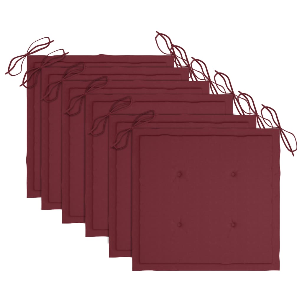 Verleihen Sie Ihrem Esszimmer, Garten oder Ihrer Terrasse einen Hauch von rustikalem Charme mit diesem stapelbaren Gartenstuhl-Set aus Holz! Das Essstuhl-Set verleiht Ihrem Innen- oder Außenbereich mit seinem eleganten Design einen Hauch von Eleganz. Dieses Teakholz-Möbel besteht aus extrem haltbarem Teakholz, das abgelagert, künstlich getrocknet und fein geschliffen worden ist, um ein sehr glattes Aussehen zu erzielen. Teak wird für seine außergewöhnliche Festigkeit und Witterungsbeständigkeit geschätzt, wodurch es sich weitaus besser als jede andere Holzart für Gartenmöbel eignet. Teak ist die perfekte Wahl, wenn Sie ein langlebiges Gartenmöbel kaufen möchten. Es ist leicht zu pflegen und mit einem feuchten Tuch zu reinigen. Außerdem kann der Esszimmerstuhl gestapelt werden, um bei Nichtgebrauch Stauraum zu sparen. Darüber hinaus sorgen die mitgelieferten Kissen für zusätzlichen Komfort. Jedes Kissen hat 2 Sätze Bänder, um es fest am Stuhl zu befestigen. Hinweis: Um die Lebensdauer Ihrer Gartenmöbel zu verlängern, empfehlen wir Ihnen, diese regelmäßig zu reinigen und bei Nichtgebrauch im Freien abzudecken.Reinigung: Verwenden Sie eine milde SeifenlösungLagerung: Wenn möglich, an einem kühlen, trockenen Ort im Innenbereich lagern. Wenn das Produkt im Freien gelagert wird, schützen Sie es mit einer wasserdichten Abdeckung. Wischen und trocknen Sie das überschüssige Wasser oder den Schnee nach Regen oder Schneefall von der ebenen Fläche. Sorgen Sie für eine ausreichende Luftzirkulation, um feuchtigkeitsbedingte Schäden zu vermeiden.